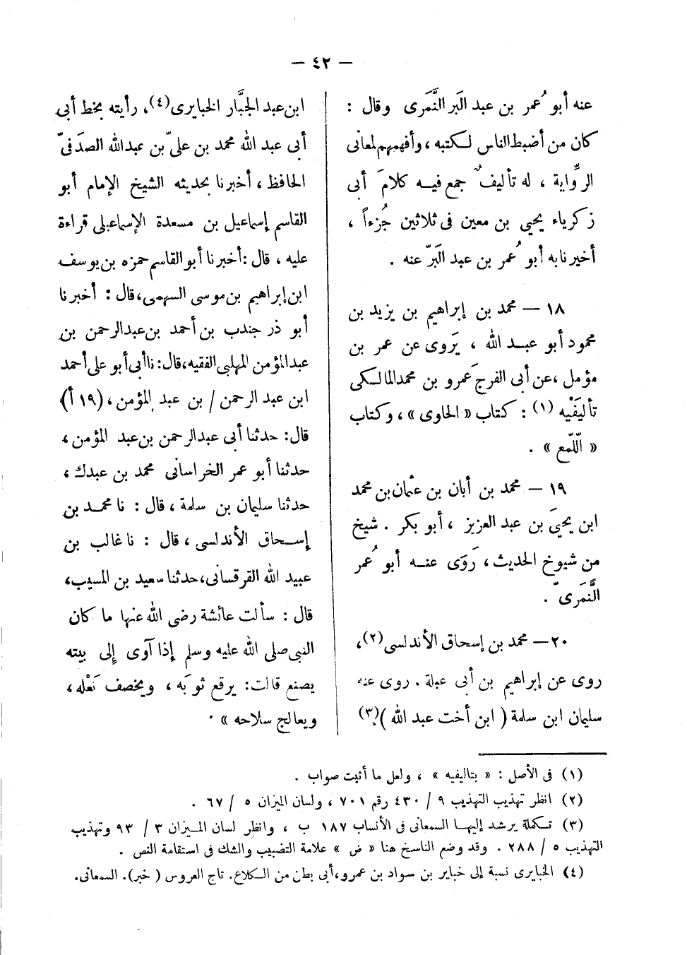 عنه أبو عمر بن عبد البر النمري وقال: كان من أضبط الناس لكتبه، وأفهمهم لمعاني الرواية؛ له تأليف جمع فيه كلام أبي زكرياء يحيى بن معين في ثلاثين جزءاً، أخبرنا به أبو عمر بن عبد البر عنه.