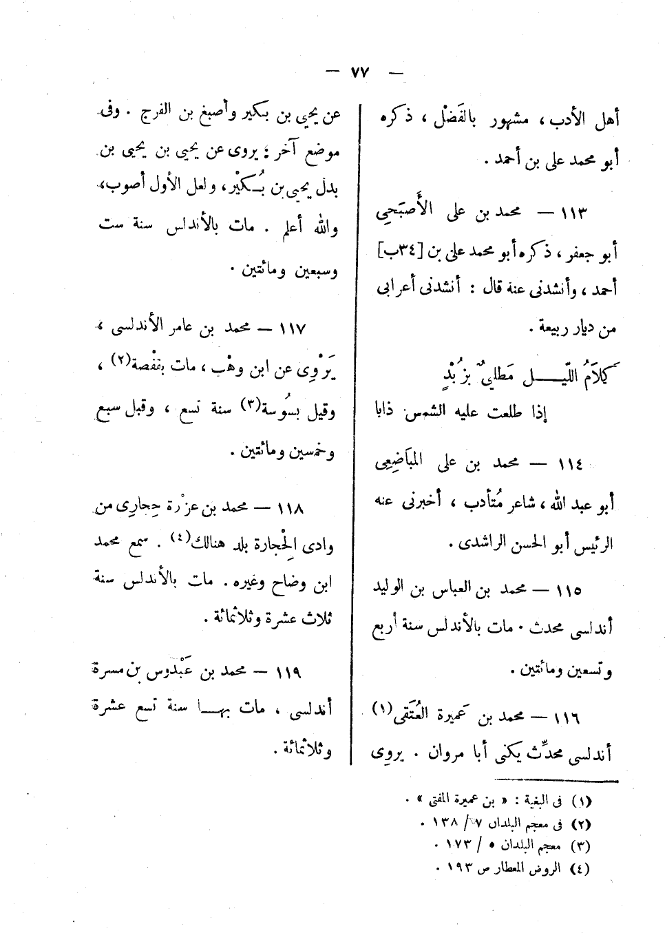 محمد بن عميرة العتقى أندلسي محدث، يكن أبا مروان. يروى عن يحيى بن بكير وأصبغ بن الفرج. وفي موضع آخر: يروى عن يحيى بن كثير، بدل يحيى بن بكير؛ ولعل الأول أصوب، والله أعلم. مات بالأندلس سنة ست وسبعين ومائتين.