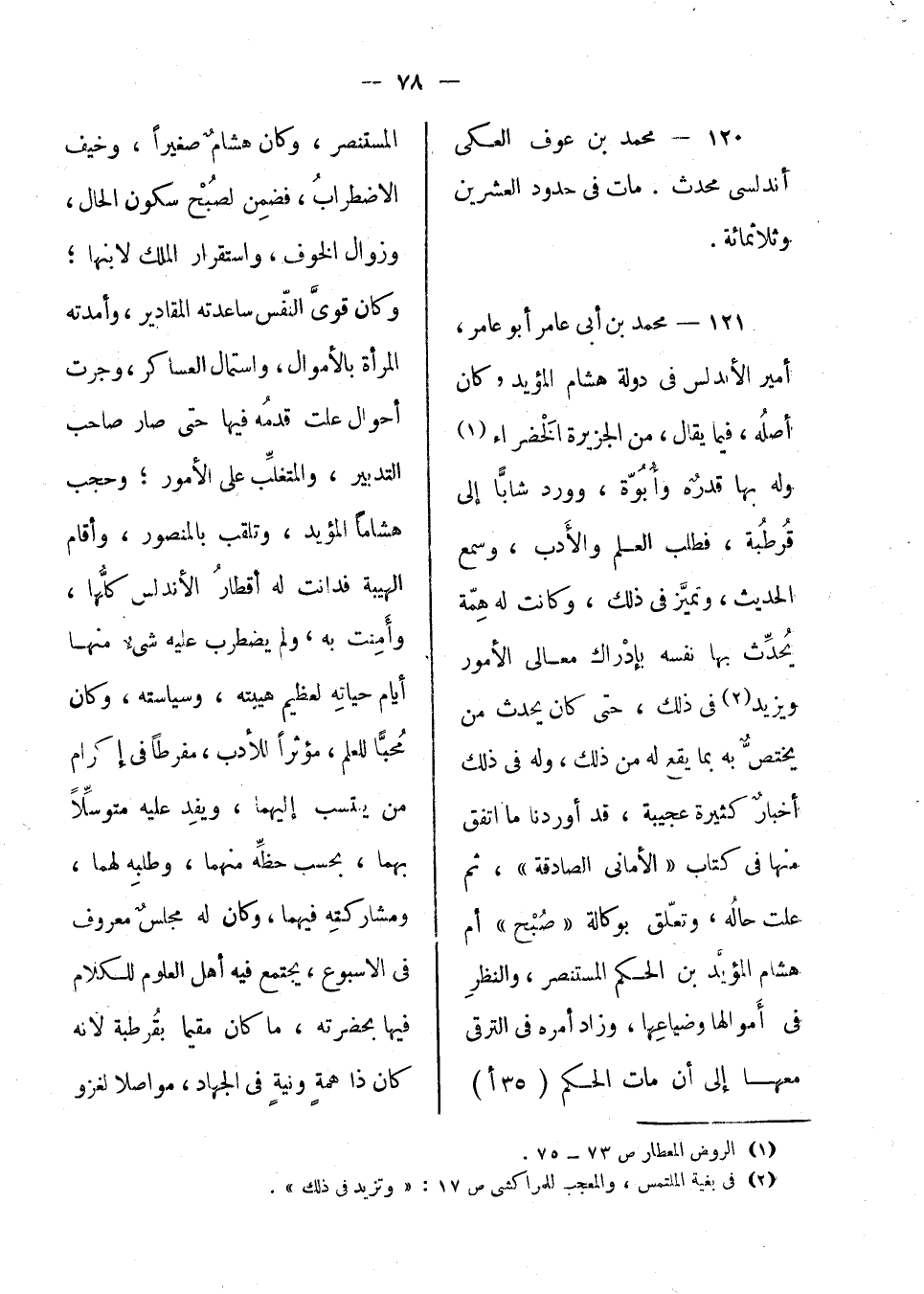 محمد بن أبي عامر أبو عامر، أمير الأندلس في دولة هشام المؤيد، كان أصله، فيما يقال، من الجزيرة الخضراء، وله بها قدر وأبوة، وورد شاباً إلى قرطبة، فطلب العلم والأدب، وسمع الحديث، وتميز في ذلك، وكانت له همة يحدث بها نفسه بإدراك معالى الأمور ويزيد في ذلك، حتى كان يحدث من يختص به بما يقع له من ذلك، وله في ذلك أخبار كثيرة عجيبة، قد أوردنا ما اتفق منها في كتاب الأماني الصادقة، ثم علت حاله، وتعلق بوكالة صبح أم هشام المؤيد، بن الحكم المستنصر، والنظر في أموالها وضياعها، وزاد أمره في الترقي معها إلى أن مات الحكم المستنصر، وكان هشام صغيراً، وخيف الاضطراب، فضمن لصبح سكون الحال، وزوال الخوف، واستقرار الملك لابنها؛ وكان قوي النفس ساعدته المقادير، وأمدته المرأة بالأموال، واستمال العساكر، وجرت أحوال علت قدمه فيها حتى صار صاحب التدبير، والمتغلب على الأمور؛ وحجب هشاماً المؤيد، وتلقب بالمنصور، وأقام الهيبة فدانت له أقطار الأندلس كلها، وأمنت به، ولم يضطرب عليه شيء منها أيام حياته لعظيم هيبته، وسياسته؛ وكان محباً للعلم، مؤثراً للأدب، مفرطاً في إكرام من ينتسب إليهما، ويفد عليه متوسلاً بهما، بحسب حظه منهما، وطلبه لهما، ومشاركته فيهما؛ وكان له مجلس معروف في الأسبوع، يجتمع فيه أهل العلوم للكلام فيها بحضرته، ما كان مقيماً بقرطبة، لأنه كان ذا همة ونية في الجهاد، مواصلاً لغزو