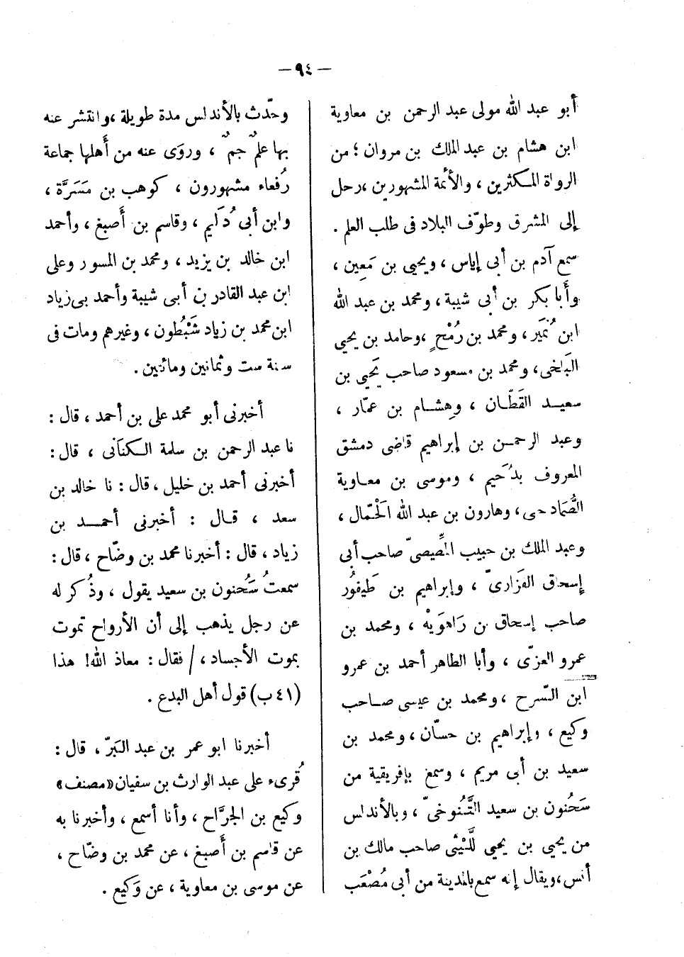 أبو عبد الله مولى عبد الرحمن، بن معاوية، بن هشام، ابن عبد الملك، بن مروان؛ من الرواة المكثرين، والأيمة المشهورين؛ رحل إلى المشرق وطوف البلاد في طلب العلم. سمع آدم بن أبي إياس، ويحيى بن معين، وأبا بكر ابن أبي شيبة، ومحمد بن عبد الله بن نمير، ومحمد بن رمح، وحامد بن يحيى البلخي، ومحمد بن مسعود صاحب يحيى بن سعيد القطان، وهشام بن عمار، وعبد الرحمن بن إبراهيم قاضي دمشق المعروف بدحيم، وموسى بن معاوية الصمادحى، وهارون بن عبد الله الحمال، وعبد الملك بن حبيب المصيصي صاحب أبي إسحاق الفزاري، وإبراهيم ابن طيفور صاحب إسحاق بن راهويه، ومحمد بن عمرو العزي، وأبا الطاهر أحمد ابن عمرو بن السرح، ومحمد بن عيسى صاحب وكيع، وإبراهيم بن حسان، ومحمد بن سعيد ابن أبي مريم؛ وسمع بإفريقية من سحنون بن سعيد التنوخي، وبالأندلس من يحيى ابن يحيى الليثي صاحب مالك بن أنس؛ ويقال إنه سمع بالمدينة من أبي مصعب؛ وحدث بالأندلس مدة طويلة، وانتشر عنه بها علم جم، وروى عنه من أهلها جماعة رفعاء مشهورون، كوهب بن مسرة، وابن أبي دليم، وقاسم بن أصبغ، وأحمد بن خالد ابن يزيد، ومحمد بن المسور، وعلى بن عبد القادر بن أبي شيبة، وأحمد بن زياد ابن محمد بن زياد شبطون، وغيرهم؛ ومات في سنة وثمانين ومائتين.