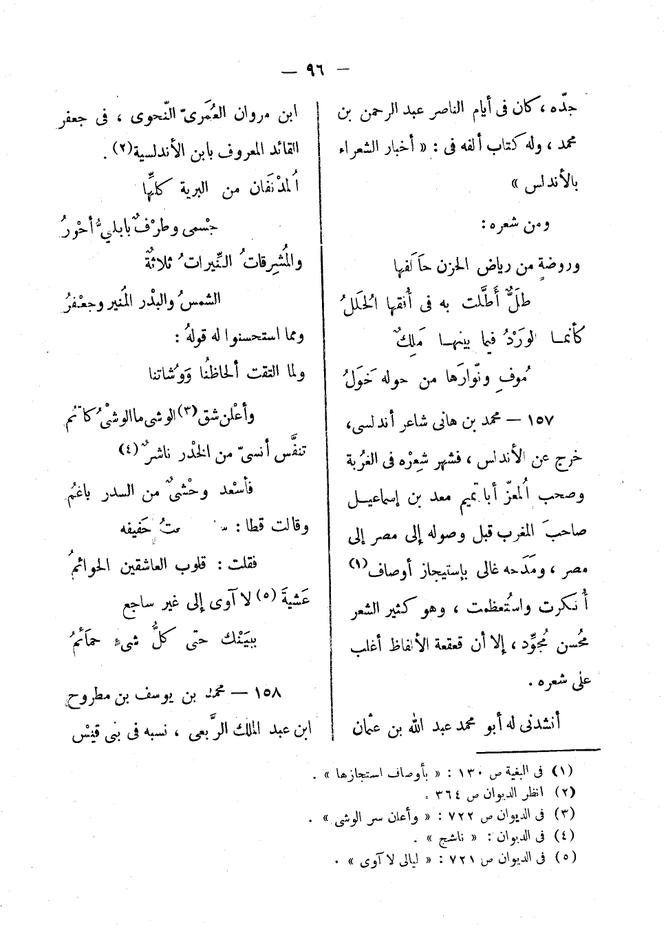 أنشدني له أبو محمد عبد الله بن عثمان بن مروان العمري النحوي، في جعفر القائد المعروف بابن الأندلسية: