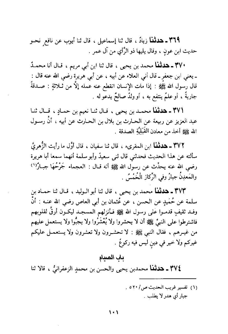 371 - حَدَّثَنَا مُحَمَّدُ بْنُ يَحْيَى، قَالَ: ثَنَا نُعَيْمُ بْنُ حَمَّادٍ، قَالَ: ثَنَا عَبْدُ الْعَزِيزِ، عَنْ رَبِيعَةَ، عَنِ الْحَارِثِ بْنِ بِلَالِ بْنِ الْحَارِثِ، عَنْ أَبِيهِ، أَنَّ رَسُولَ اللَّهِ صَلَّى اللهُ عَلَيْهِ وَسَلَّمَ «§أَخَذَ مِنْ مَعَادِنِ الْقَبَلِيَّةِ الصَّدَقَةَ»