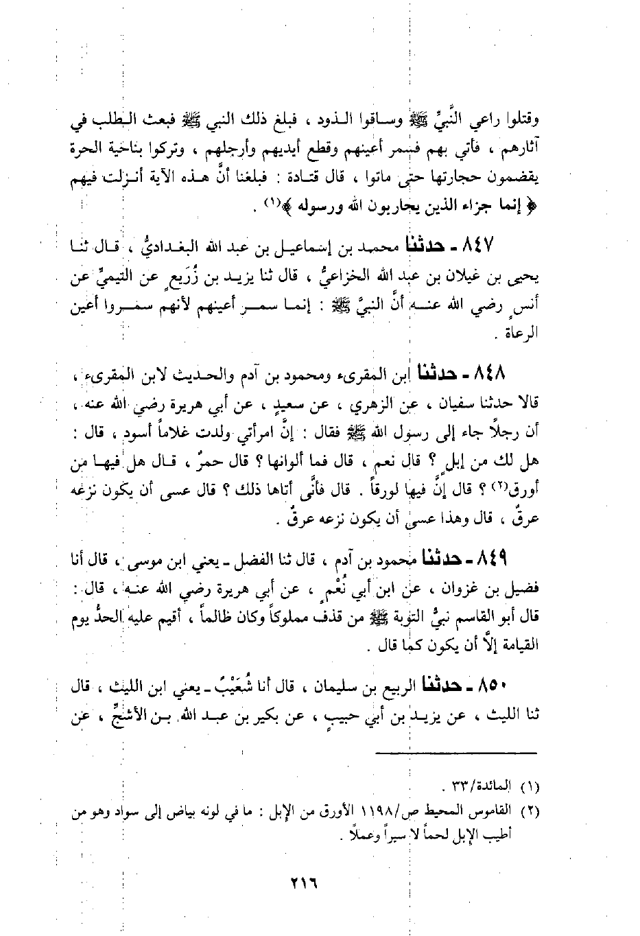 847 - حَدَّثَنَا مُحَمَّدُ بْنُ إِسْمَاعِيلَ بْنِ عَبْدِ اللَّهِ الْبَغْدَادِيُّ، قَالَ: ثنا يَحْيَى بْنُ غَيْلَانَ بْنِ عَبْدِ اللَّهِ الْخُزَاعِيُّ، قَالَ: ثنا يَزِيدُ بْنُ زُرَيْعٍ، عَنِ التَّيْمِيِّ، عَنْ أَنَسٍ، رَضِيَ اللَّهُ عَنْهُ " أَنَّ النَّبِيَّ صَلَّى اللهُ عَلَيْهِ وَسَلَّمَ إِنَّمَا §سَمَرَ أَعْيُنَهُمْ لِأَنَّهُمْ سَمَرُوا أَعْيَنَ الرُّعَاةِ