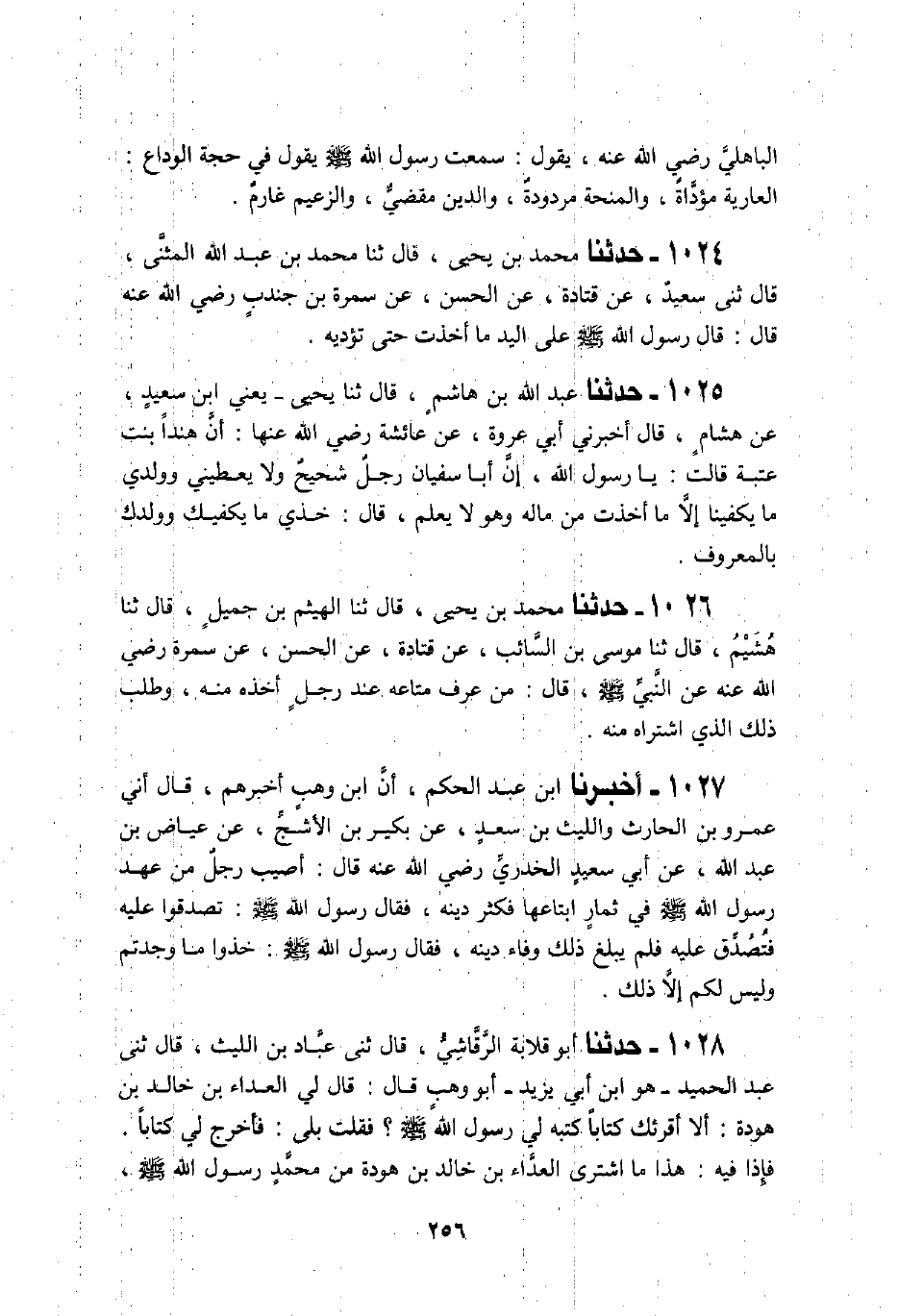 1028 - حَدَّثَنَا أَبُو قِلَابَةَ الرَّقَاشِيُّ، قَالَ: ثني عَبَّادُ بْنُ اللَّيْثِ قَالَ: ثني عَبْدُ الْمَجِيدِ هُوَ ابْنُ أَبِي يزَيْدَ أَبُو وَهْبٍ قَالَ: قَالَ لِي الْعَدَّاءُ بْنُ خَالِدِ بْنِ هَوْذَةَ: أَلَا أُقْرِئَكَ كِتَابًا كَتَبَهُ لِي رَسُولُ اللَّهِ صَلَّى اللهُ عَلَيْهِ وَسَلَّمَ؟ فَقُلْتُ: بَلَى فَأَخْرَجَ لِي كِتَابًا فَإِذَا فِيهِ: «§هَذَا مَا اشْتَرَى الْعَدَّاءُ بْنُ خَالِدِ بْنِ هَوْدَةَ مِنْ مُحَمَّدٍ رَسُولِ اللَّهِ صَلَّى اللهُ عَلَيْهِ وَسَلَّمَ اشْتَرَى مِنْهُ عَبْدًا أَوْ أَمَةً» عَبَّادٌ يَشُكُّ " لَا دَاءَ وَلَا غَائِلَةَ وَلَا خِبْثَةَ بَيْعِ الْمُسْلِمِ الْمُسْلِمَ