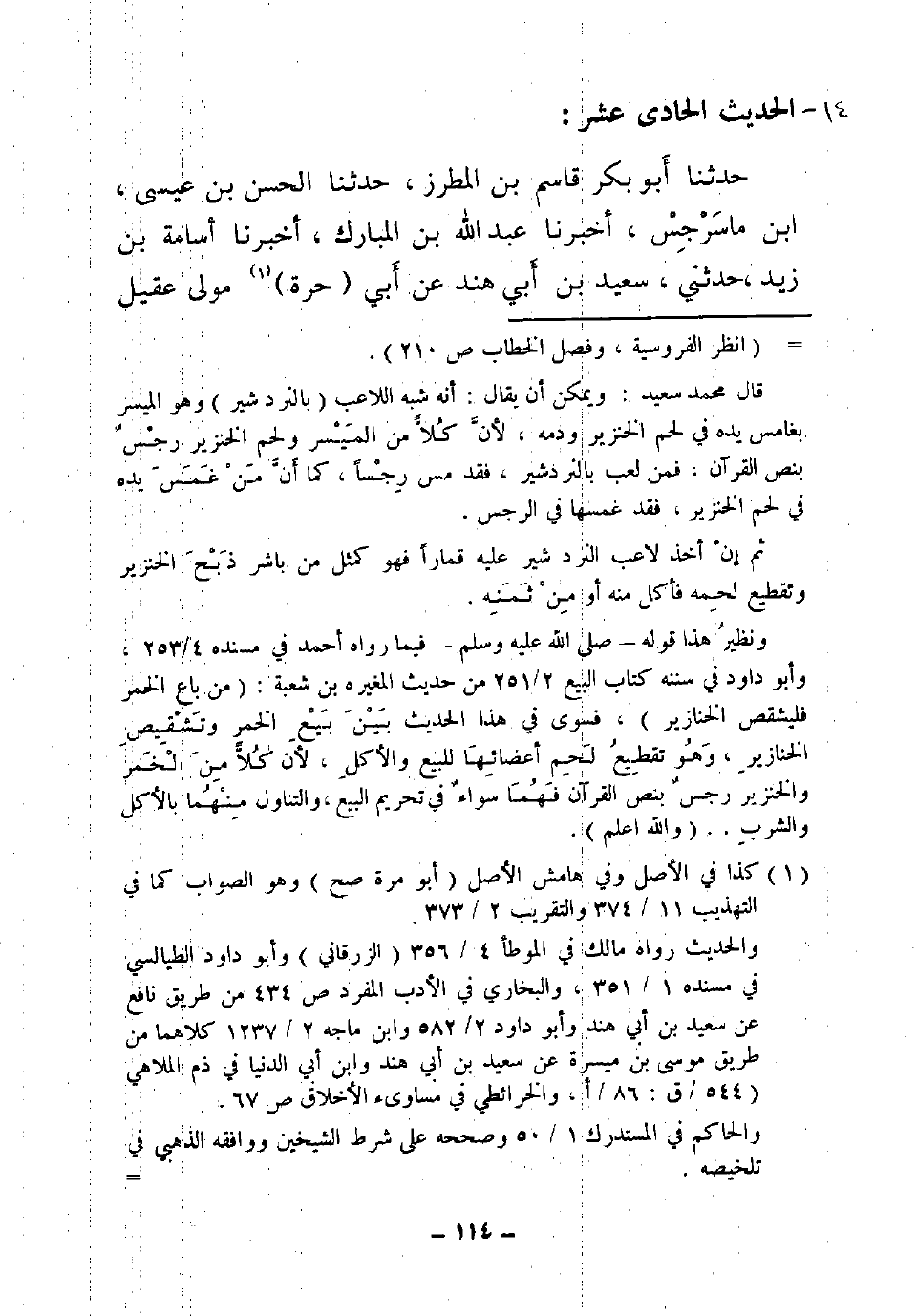 12 - حَدَّثَنَا أَبُو بَكْرٍ , قَاسِمُ بْنُ الْمُطَرِّزِ حَدَّثَنَا الْحَسَنُ بْنُ عِيسَى بْنِ مَاسِرْجِسَ , أَخْبَرَنَا عَبْدُ اللَّهِ بْنُ الْمُبَارَكِ , أَخْبَرَنَا أُسَامَةُ بْنُ زَيْدٍ , حَدَّثَنِي سَعِيدُ بْنُ أَبِي هِنْدٍ , عَنْ أَبِي مُرَّةَ , مَوْلَى عَقِيلٍ -[115]- فِيمَا أَعْلَمُ عَنْ أَبِي مُوسَى الْأَشْعَرِيِّ , قَالَ: قَالَ رَسُولُ اللَّهِ صَلَّى اللَّهُ عَلَيْهِ وَسَلَّمَ: «§مَنْ لَعِبَ بِالنَّرْدِ فَقَدْ عَصَى اللَّهَ وَرَسُولَهُ»