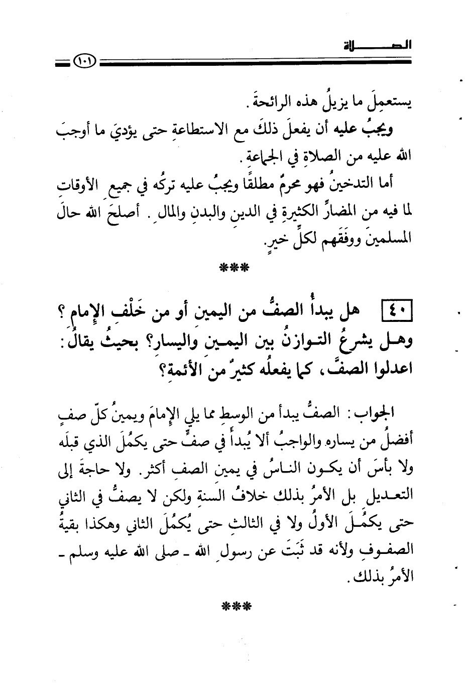 40 - هل يبدأ الصف من اليمين أو من خلف الإمام، وهل يشرع التوازن بين اليمين واليسار؟ بحيث يقال: اعدلوا الصف، كما يفعله كثير من الأئمة؟
