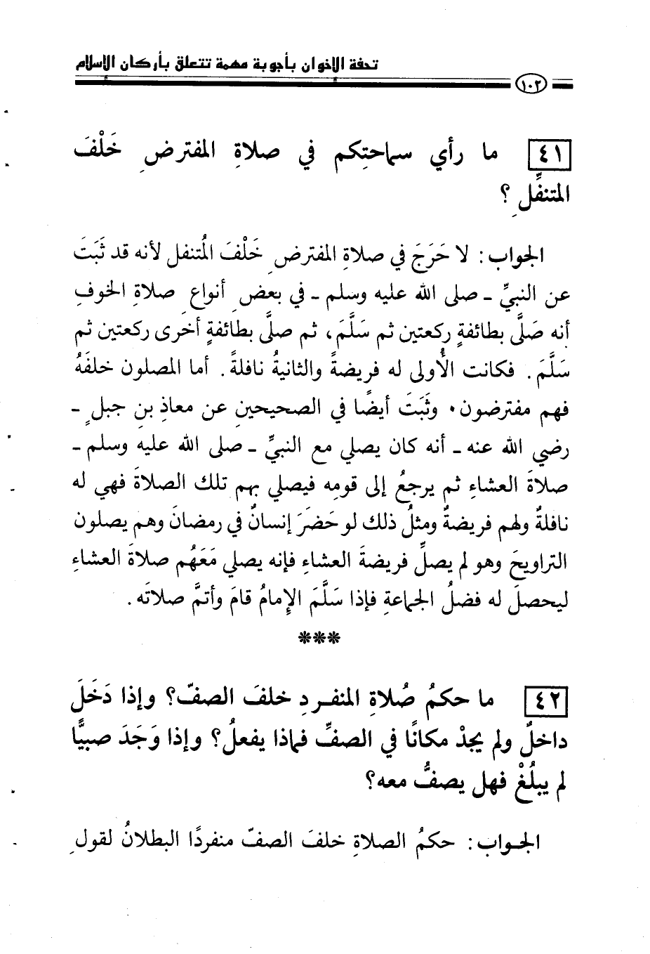 41 - ما رأي سماحتكم في صلاة المفترض خلف المتنفل؟