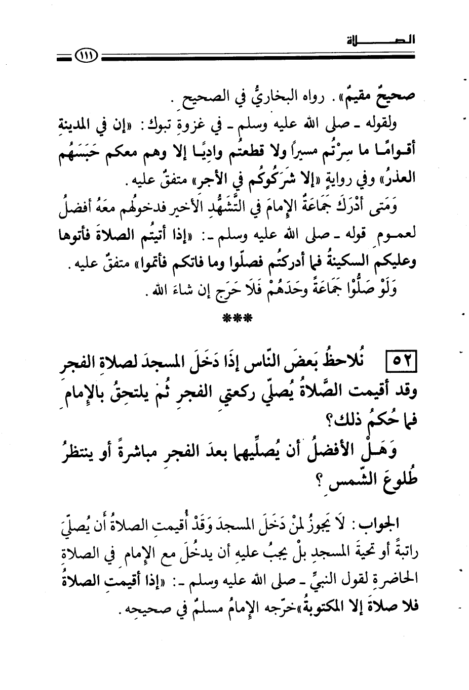 52 - نلاحظ بعض الناس إذا دخل المسجد لصلاة الفجر وقد أقيمت الصلاة يصلي ركعتي الفجر ثم يلتحق بالإمام فما حكم ذلك؟