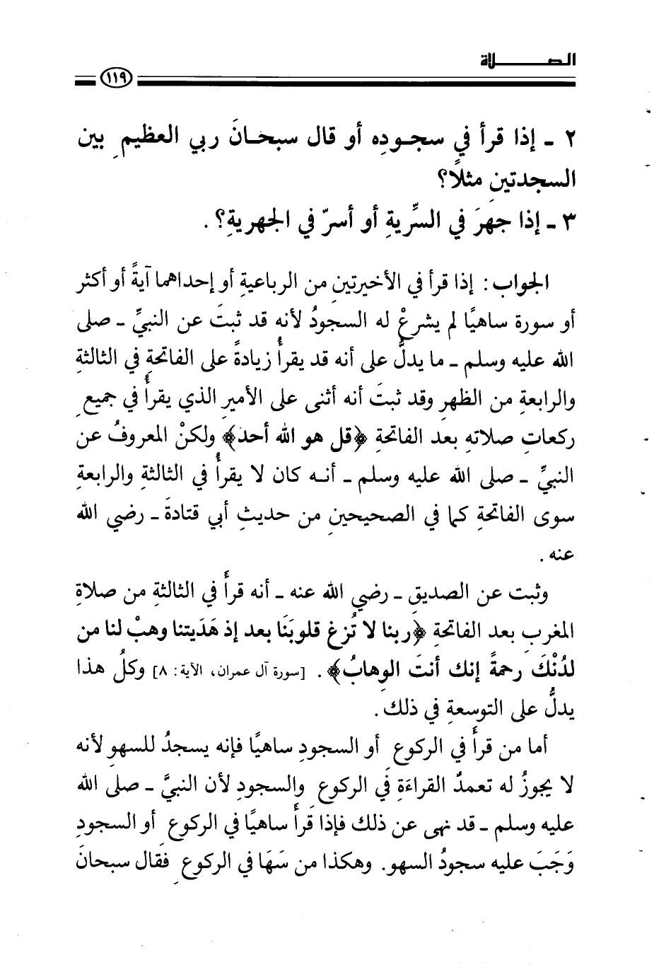 2 - إذا قرأ في سجوده أو قال سبحان ربي العظيم بين السجدتين مثلا؟