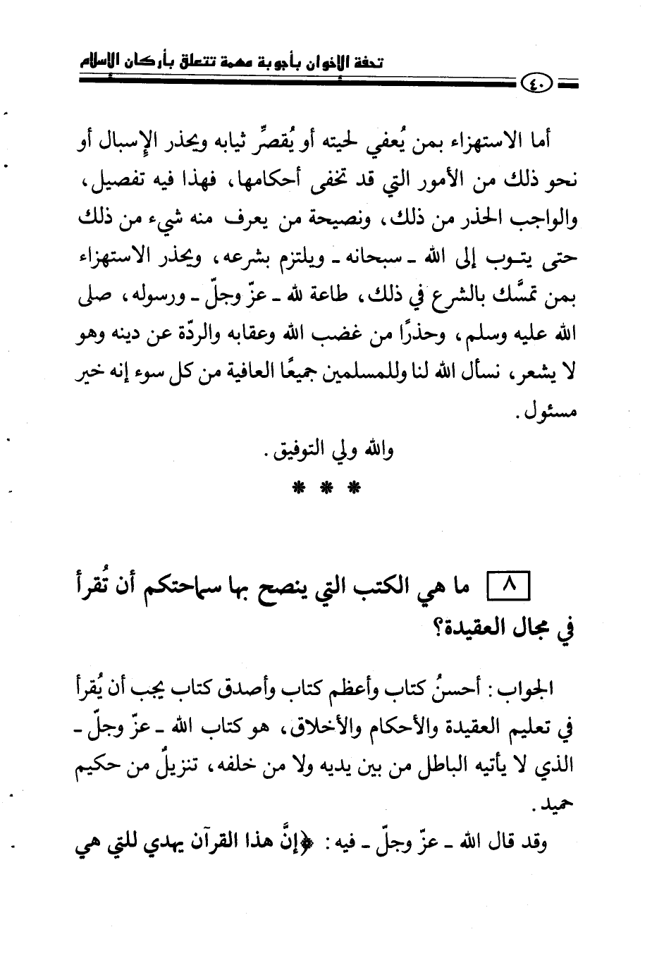 8 - ما هي الكتب التي ينصح بها سماحتكم أن تقرأ في مجال العقيدة؟