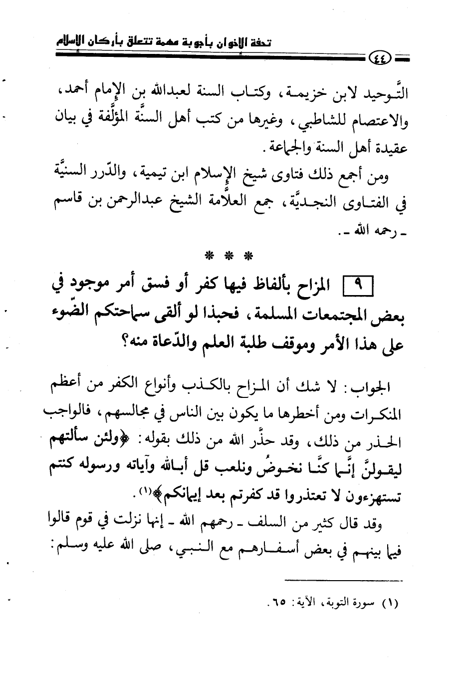 (¬1) سورة التوبة الآيتان: 65، 66.
