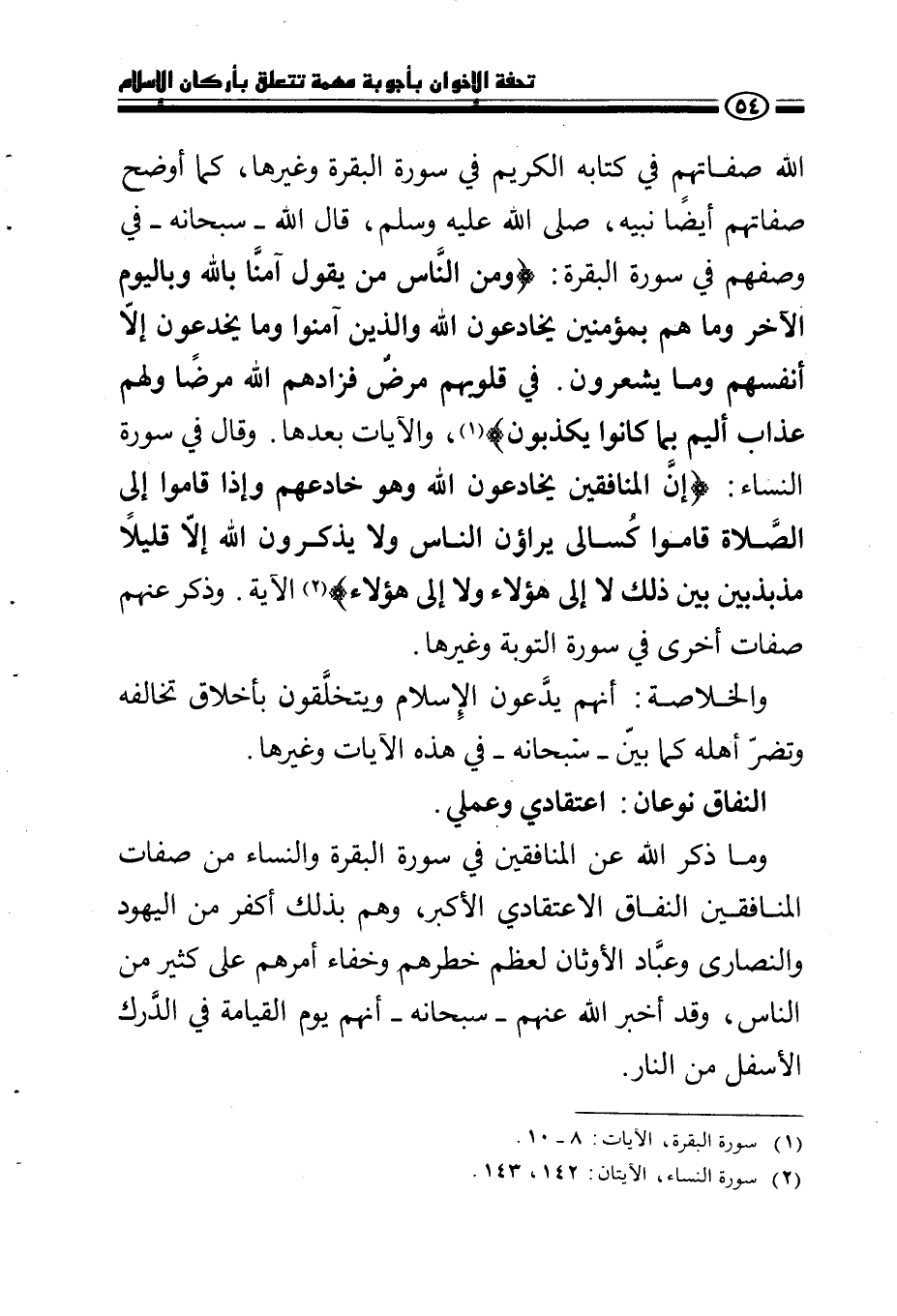 كتاب تحفة الإخوان بأجوبة مهمة تتعلق بأركان الإسلام