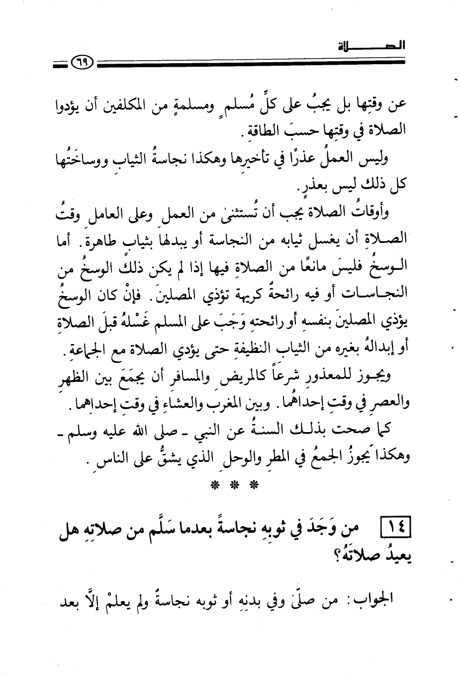 14 - من وجد في ثوبه نجاسة بعدما سلم من صلاته هل يعيد صلاته؟