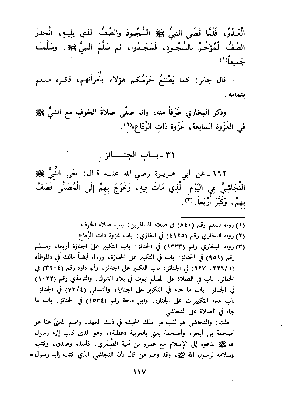 162 - عَنْ أَبِي هُرَيْرَةَ - رضي الله عنه - قَالَ: ((نَعَى النَّبِيُّ - صلى الله عليه وسلم - النَّجَاشِيَّ فِي الْيَوْمِ الَّذِي مَاتَ فِيهِ , خَرَجَ بِهِمْ إلَى الْمُصَلَّى , فَصَفَّ بِهِمْ , وَكَبَّرَ أَرْبَعاً)) . -[118]-