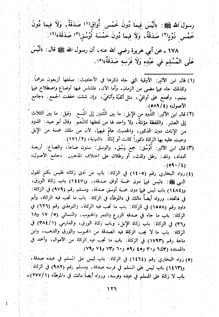 178 - عَنْ أَبِي هُرَيْرَةَ رضي الله عنه أَنَّ رَسُولَ اللَّهِ - صلى الله عليه وسلم - قَالَ: ((لَيْسَ عَلَى الْمُسْلِمِ فِي عَبْدِهِ وَلا فَرَسِهِ صَدَقَةٌ)) . -[127]-