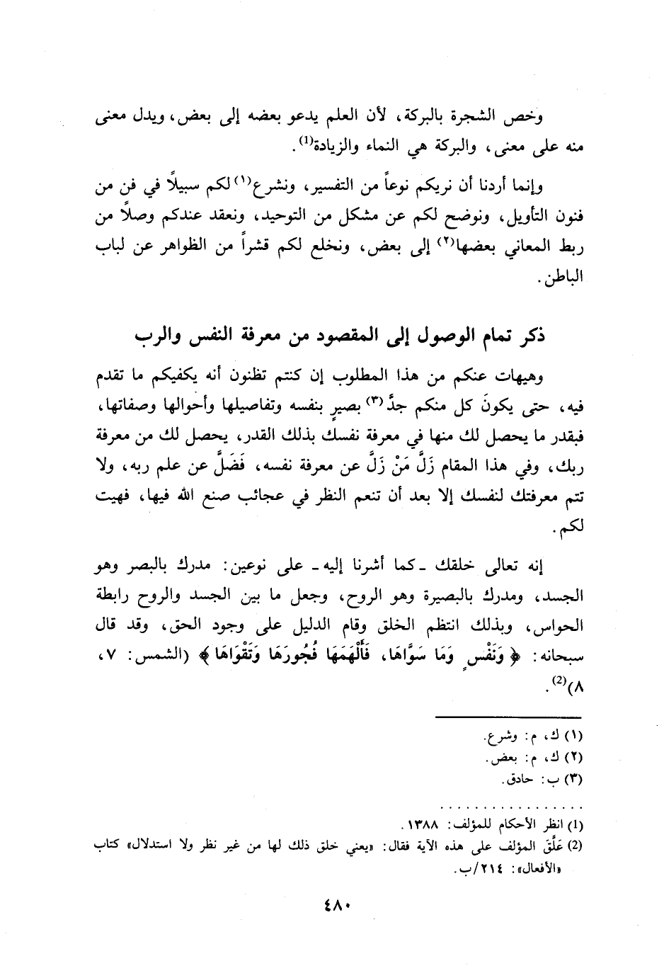 ذكر تمام الوصول إلى المقصود من معرفة النفس والرب