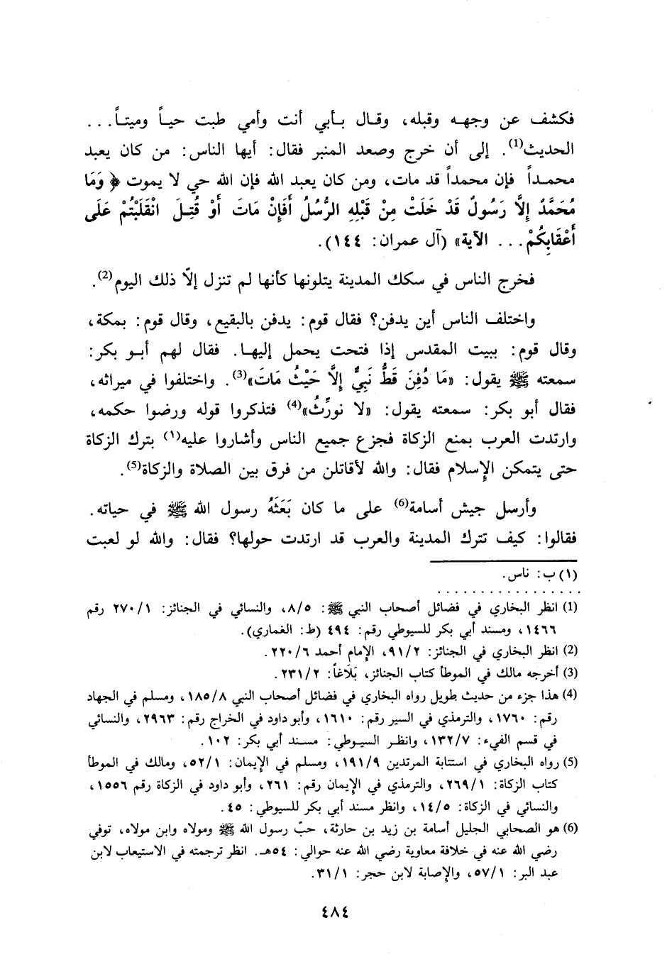 (¬1) انظر البخاري في فضائل أصحاب النبي - صلى الله عليه وسلم -: 5/ 8، والنسائي في الجنائز: 1/ 270 رقم 1466، ومسند أبي بكر للسيوطي رقم: 494 (ط: الغماري).