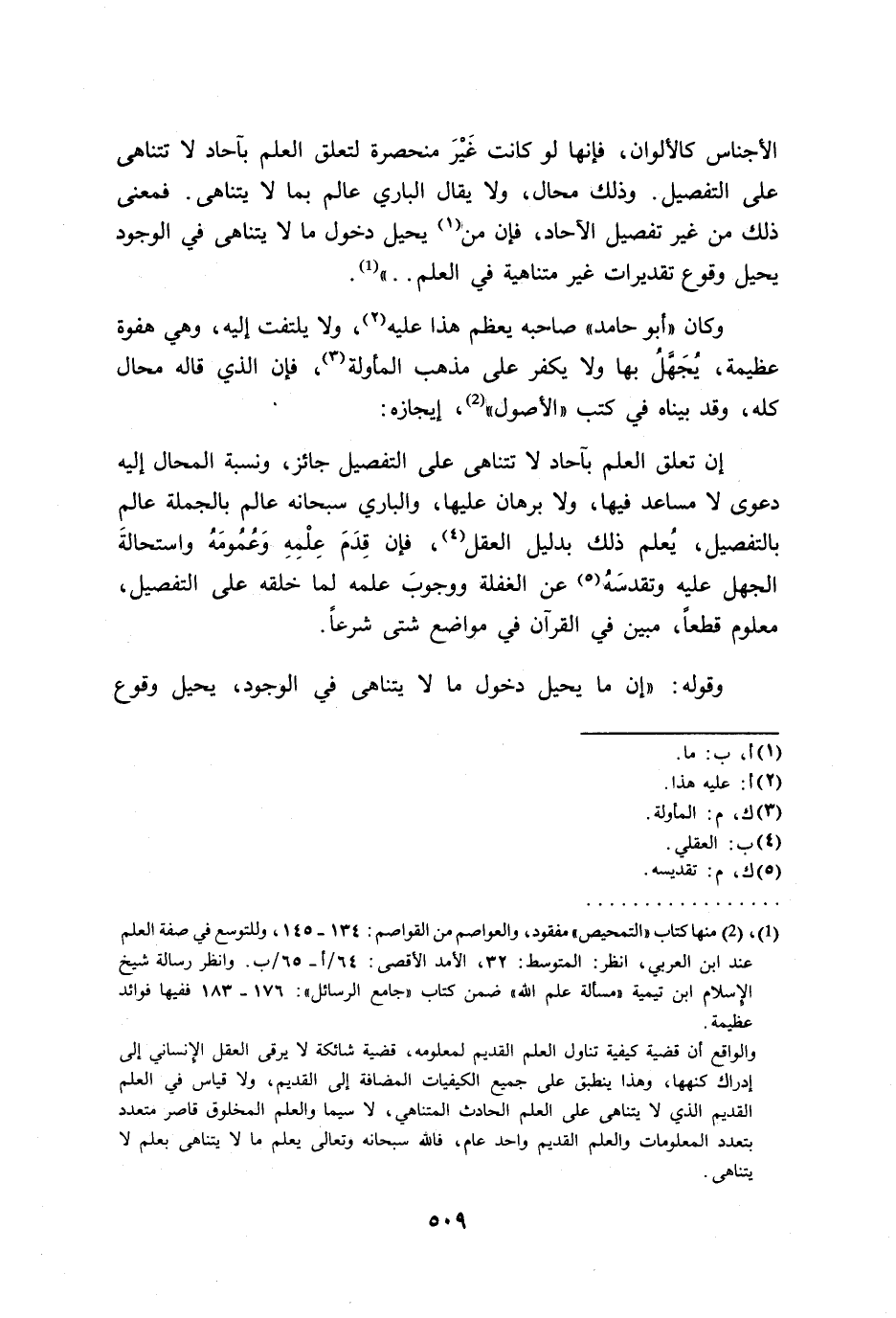 (¬1) منها كتاب "التمحيص" مفقود، والعواصم من القواصم: 134 - 145، وللتوسع في صفة العلم عند ابن العربي، انظر: المتوسط: 32، الأمد الأقصى: 64/ أ- 65/ ب. وانظر رسالة شيخ الإِسلام ابن تيمية "مسألة علم الله" ضمن كتاب "جامع الرسائل": 176 - 183 ففيها فوائد عظيمة.