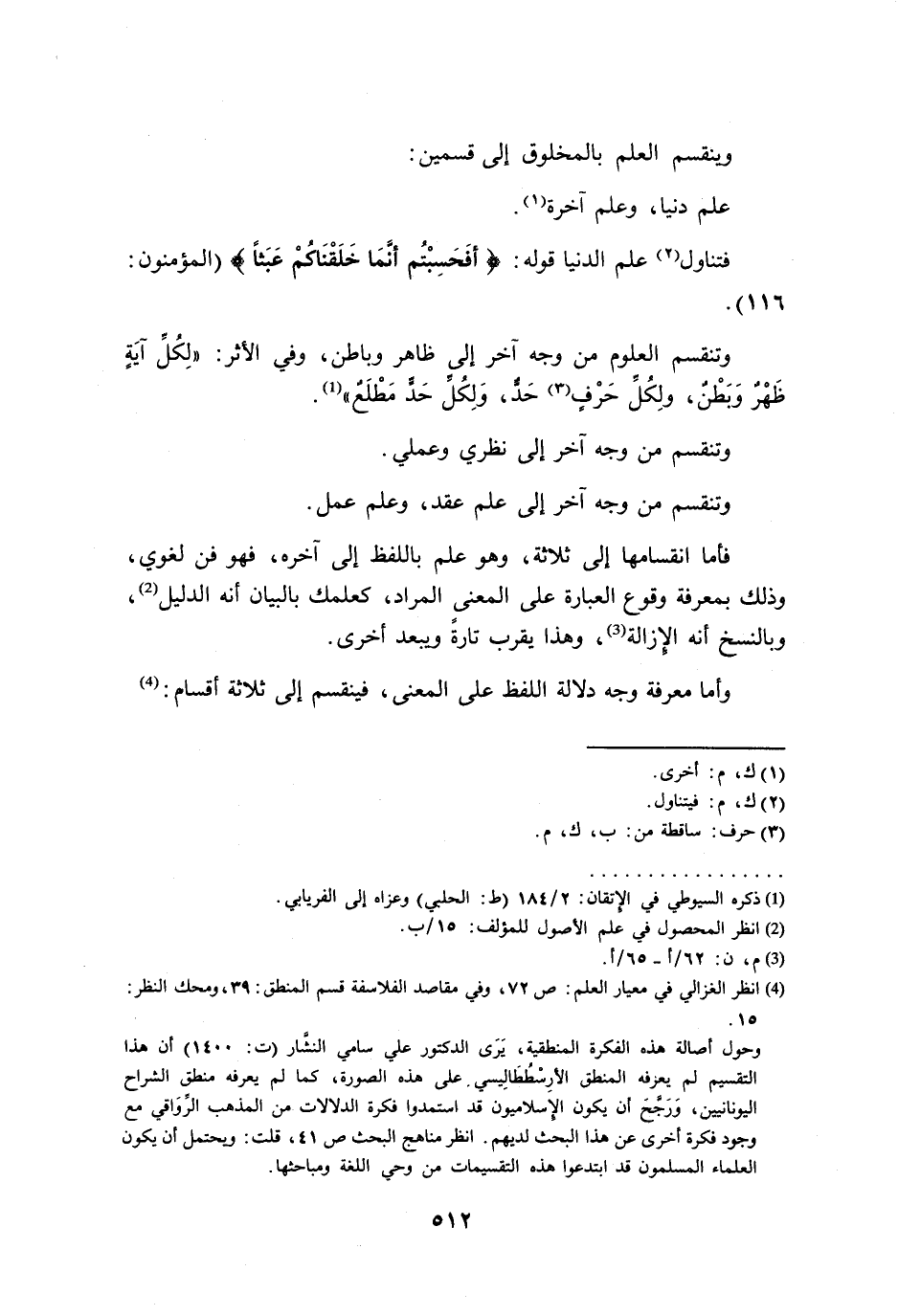 (¬4) انظر الغزالي في معيار العلم: ص 72، وفي مقاصد الفلاسفة قسم المنطق: 39، ومحك النظر: 15.
