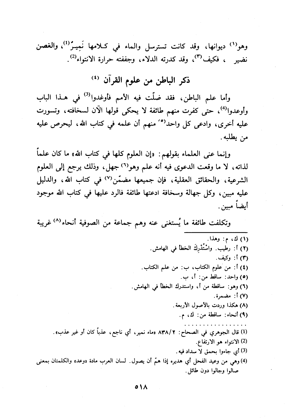وأما علم الباطن، فقد ضلّت فيه الأمم فأوغدوا (¬3) في هذا الباب وأوعدوا (¬4)، حتى كفرت منهم طائفة لا يحكى قولها الآن لسخافته، وتسورت عليه أخرى، وادعى كل واحد منهم أن علمه في كتاب الله، ليحرص عليه من يطلبه.
