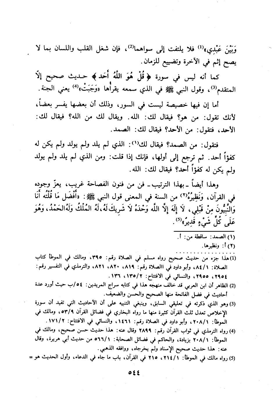 كما أنه ليس في سورة {قُلْ هُوَ اللَّهُ أَحَدٌ} حديث صحيح إلاَّ المتقدم (¬3)، وقول النبي - صلى الله عليه وسلم - في الذي سمعه يقراها "وَجَبَتْ، (¬4) يعني الجنة.