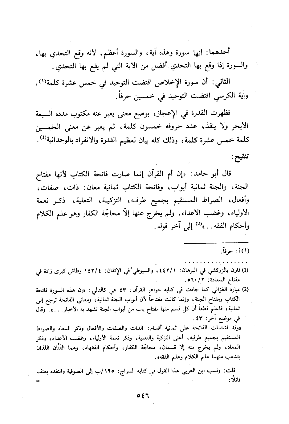 (¬1) قارن بالزركشي في البرهان: 1/ 442، والسيوطي في الإتقان: 4/ 142 وطاش كبرى زادة في مفتاح السعادة: 2/ 560.