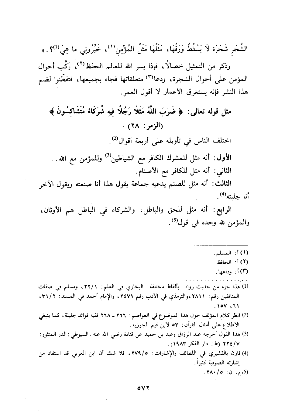 (¬2) انظر كلام المؤلف حول هذا الموضوع في العواصم: 266 - 268 ففيه فوائد جليلة، كما ينبغي الاطلاع على أمثال القرآن: 53 لابن قيم الجوزية.