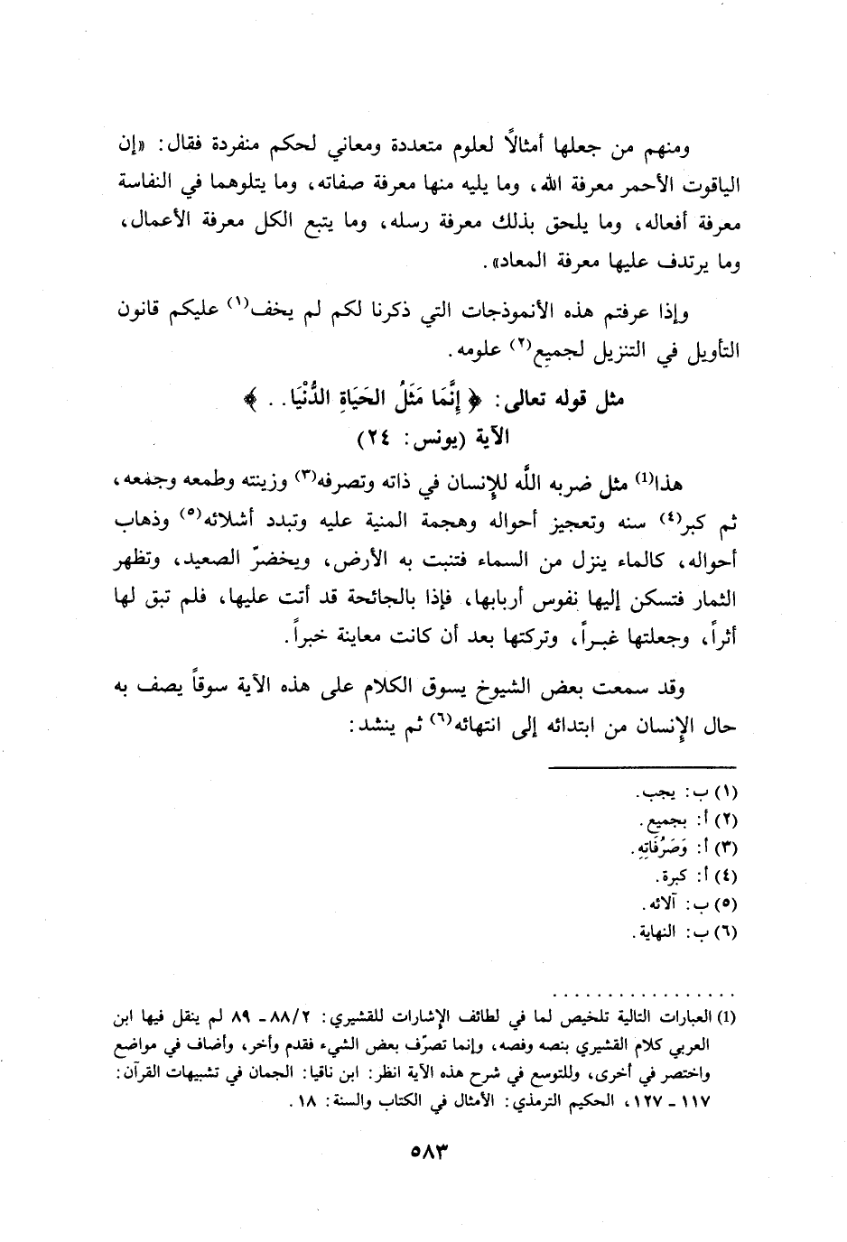 (¬1) العبارات التالية تلخيص لما في لطائف الإشارات للقشيري: 2/ 88 - 89 لم ينقل فيها ابن العربي كلام القشيري بنصه وفصه، وإنما تصرّف بعض الشيء فقدم وأخر، وأضاف في مواضع واختصر في أخرى، وللتوسع في شرح هذه الآية انظر: ابن ناقيا: الجمان في تشبيهات القرآن: 117 - 127، الحكيم الترمذي: الأمثال في الكتاب والسنة: 18.