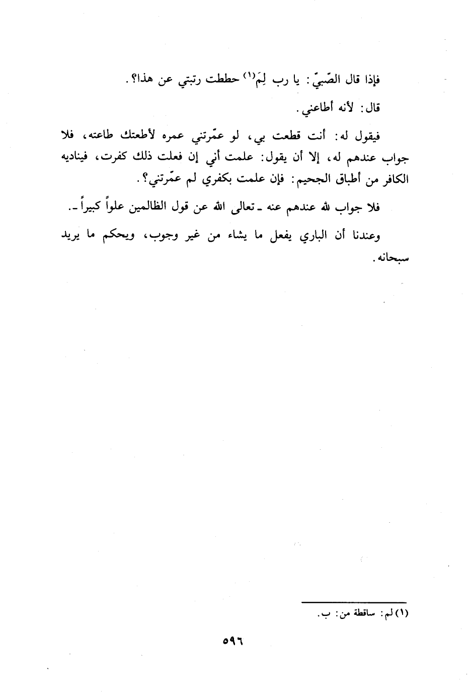 فإذا قال الصّبيّ: يا رب لِمَ حططت رتبتي عن هذا؟.