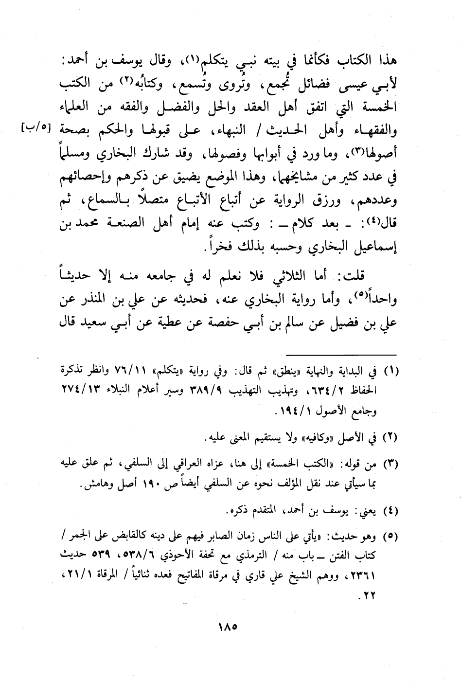 (¬3) من قوله: "الكتب الخمسة" إلى هنا، عزاه العراقي إلى السلفي، ثم علق عليه بما سيأتي عند نقل المؤلف نحوه عن السلفي أيضًا ص 190 أصل وهامش.
