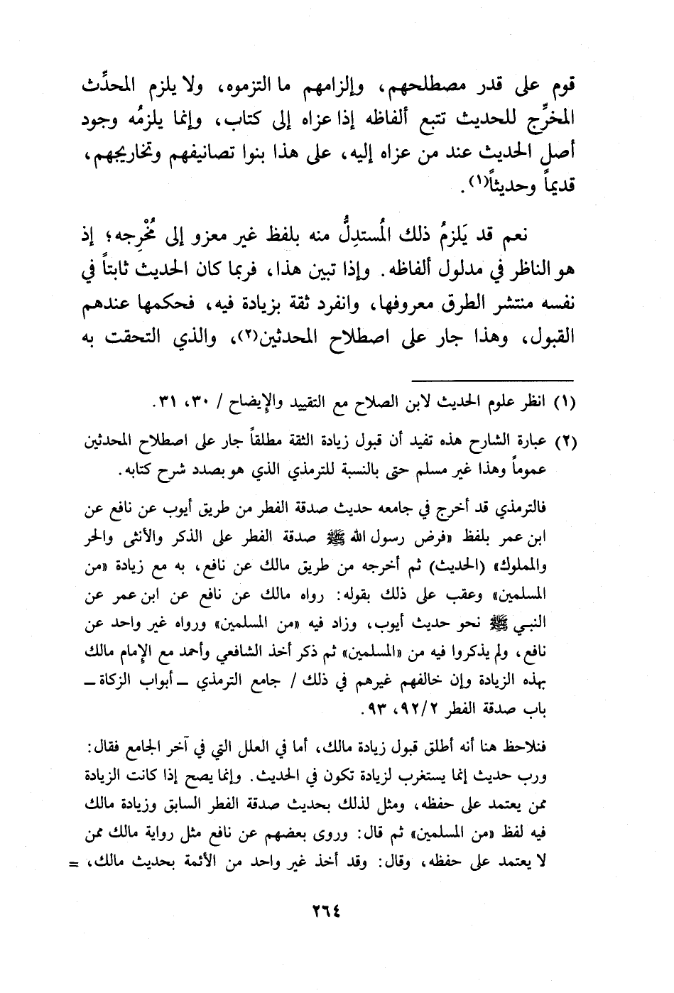 فالترمذي قد أخرج في جامعه حديث صدقة الفطر من طريق أيوب عن نافع عن ابن عمر بلفظ "فرض رسول الله -صلى الله عليه وسلم- صدقة الفطر على الذكر والأنثى والحر والمملوك" (الحديث) ثم أخرجه من طريق مالك عن نافع، به مع زيادة "من المسلمين" وعقب على ذلك بقوله: رواه مالك عن نافع عن ابن عمر عن النبي -صلى الله عليه وسلم- نحو حديث أيوب، وزاد فيه "من المسلمين" ورواه غير واحد عن نافع، ولم يذكروا فيه من "المسلمين" ثم ذكر أخذ الشافعي وأحمد مع الإمام مالك بهذه الزيادة وإن خالفهم غيرهم في ذلك/ جامع الترمذي - أبواب الزكاة - باب صدقة الفطر 2/ 92، 93.