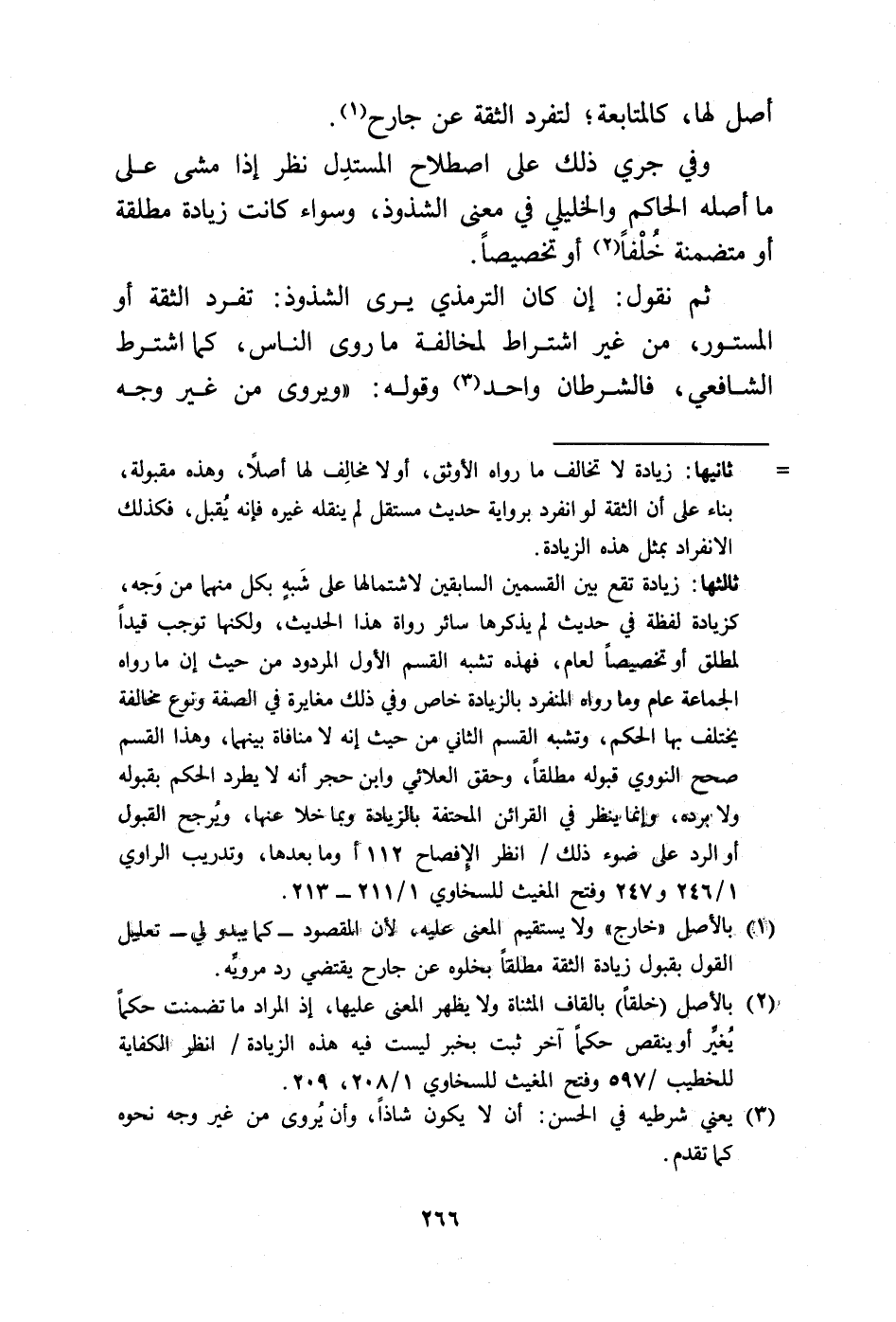 (¬1) بالأصل "خارج" ولا يستقيم المعنى. عليه، لأن: المقصود -كما يبدو لي- تعليل القول بقبول زيادة الثقة مطلقًا بخلوه عن جارح يقتضي رد مرويِّه.