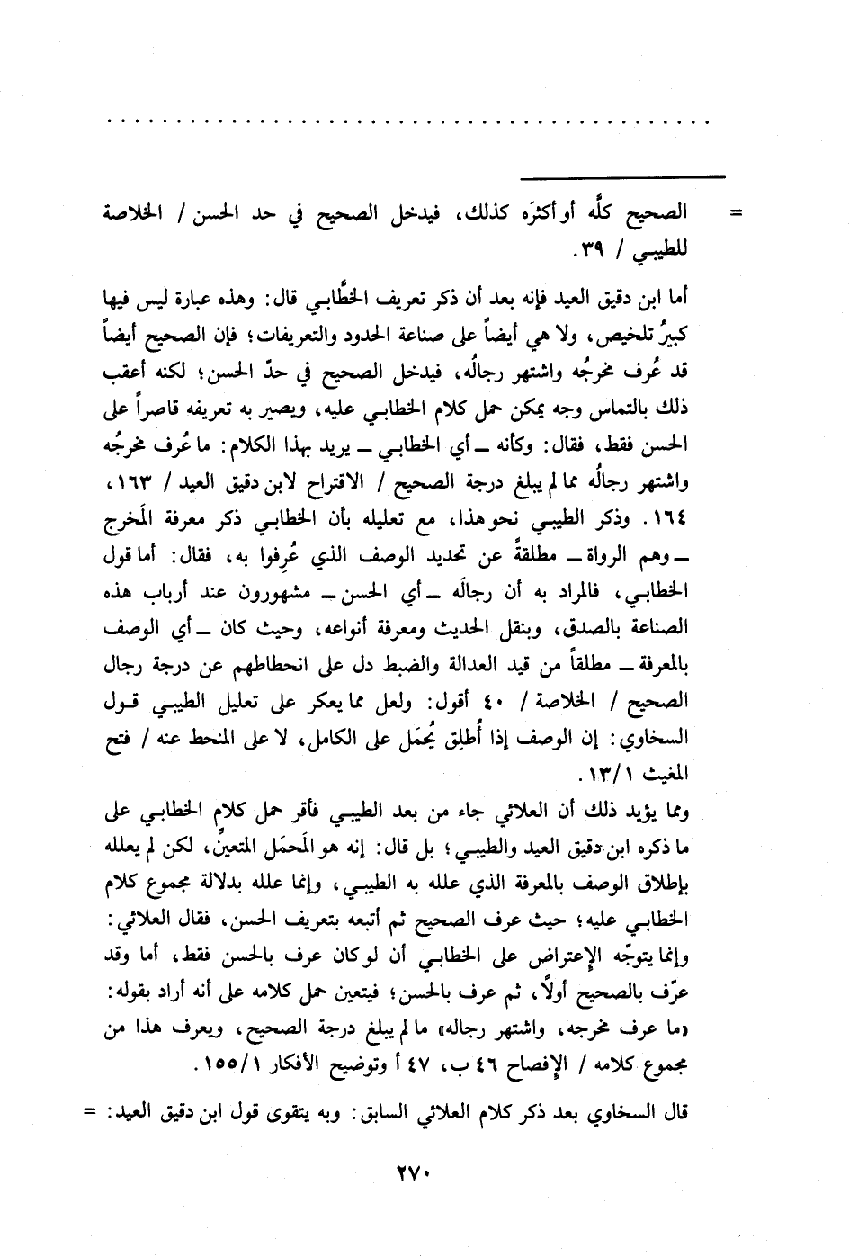 = الصحيح كلَّه أو أكثرَه كذلك، فيدخل الصحيح في حد الحسن/ الخلاصة للطيبي/ 39.