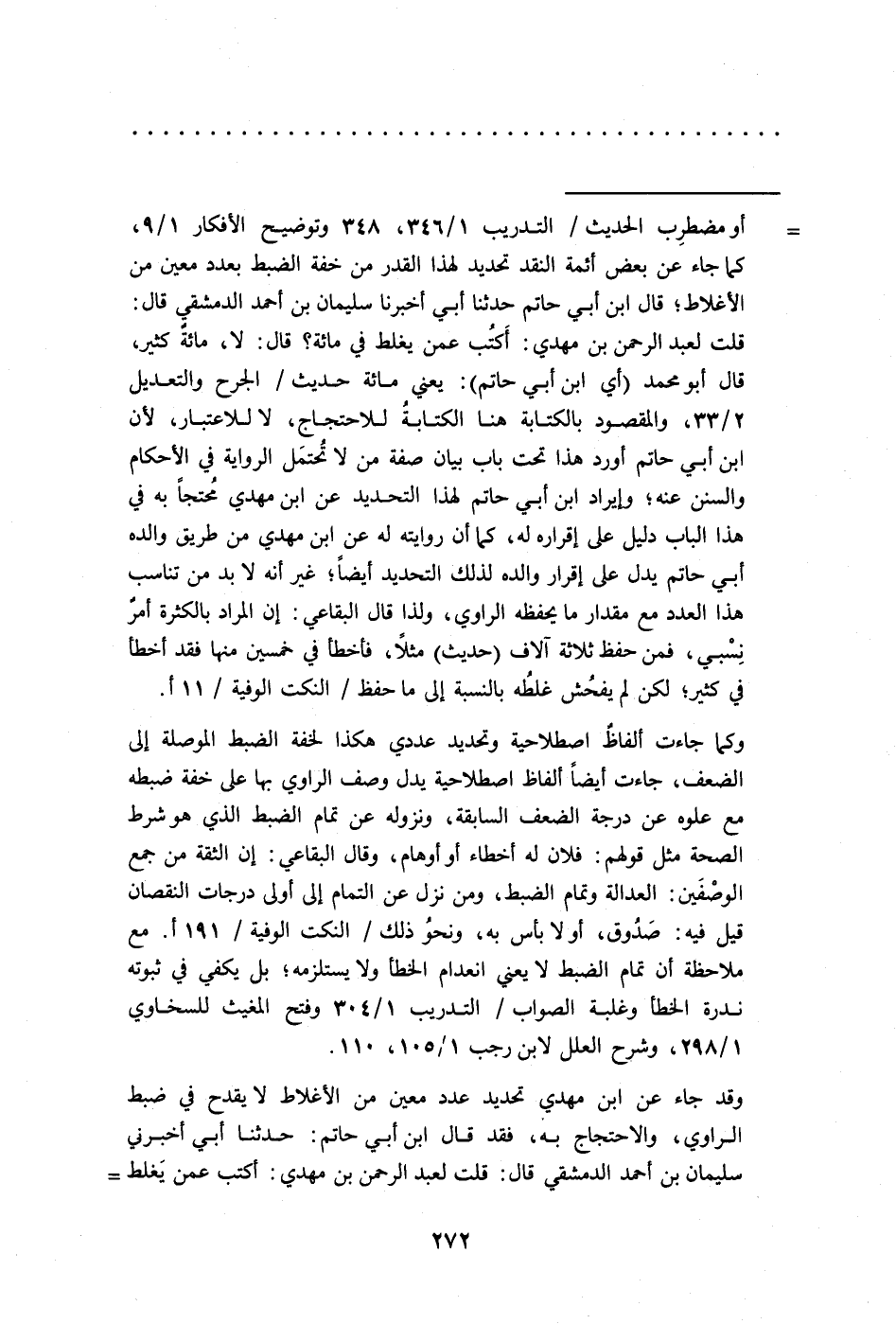 وقد جاء عن ابن مهدي تحديد عدد معين من الأغلاط لا يقدح في ضبط الراوي، والاحتجاج به، فقد قال ابن أبي حاتم: حدثنا أبي أخبرني سليمان بن أحمد الدمشقي قال: قلت لعبد الرحمن بن مهدي: أكتب عمن يَغلط =