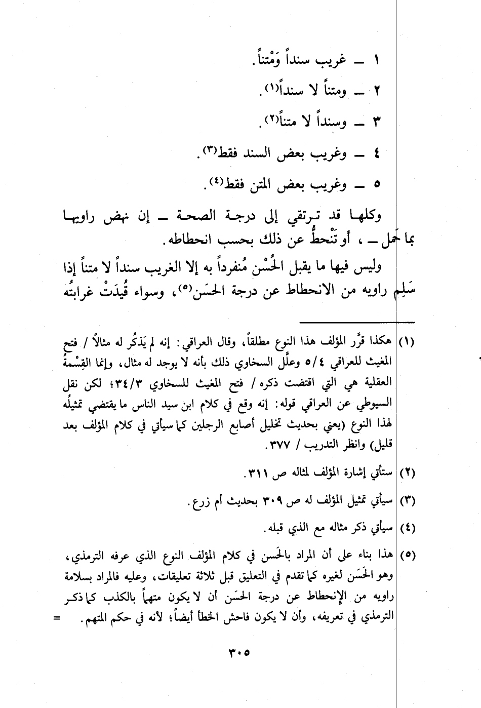 وليس فيها ما يقبل الحُسْن مُنفردًا به إلا الغريب سندًا لا متنًا إذا سَلِم راويه من الانحطاط عن درحة الحسَن (¬5)، وسواء قُيدَتْ غرابتُه