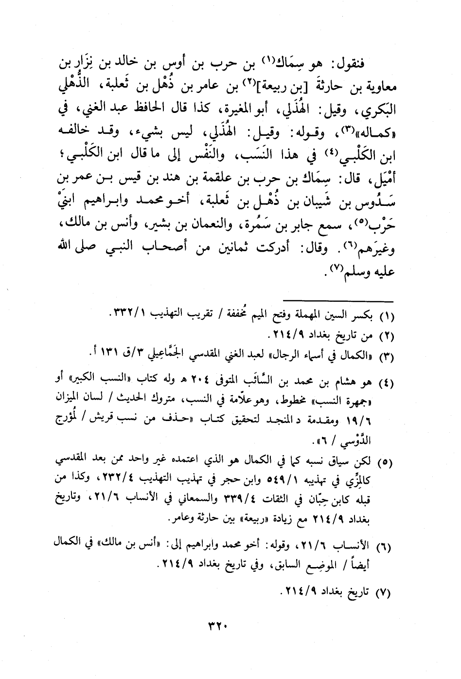 (¬5) لكن سياق نسبه كما في الكمال هو الذي اعتمده غير واحد ممن بعد المقدسي كالمِزِّي في تهذيبه 1/ 549 وابن حجر في تهذيب التهذيب 4/ 232، وكذا من قبله كابن حِبّان في الثقات 4/ 339 والسمعاني في الأنساب 6/ 21، وتاريخ بغداد 9/ 214 مع زيادة "ربيعة" بين حارثة وعامر.