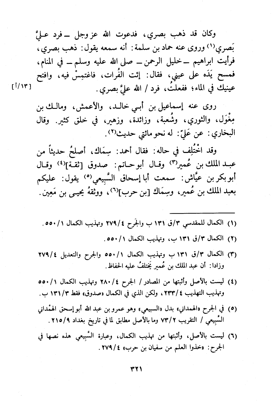 (¬3) الكمال 3 / ق 131 ب وتهذيب الكمال 1/ 550 والجرح والتعديل 4/ 279 وزادا: أن عبد الملك بن عُمير يَختلفُ عليه الحفاظ.