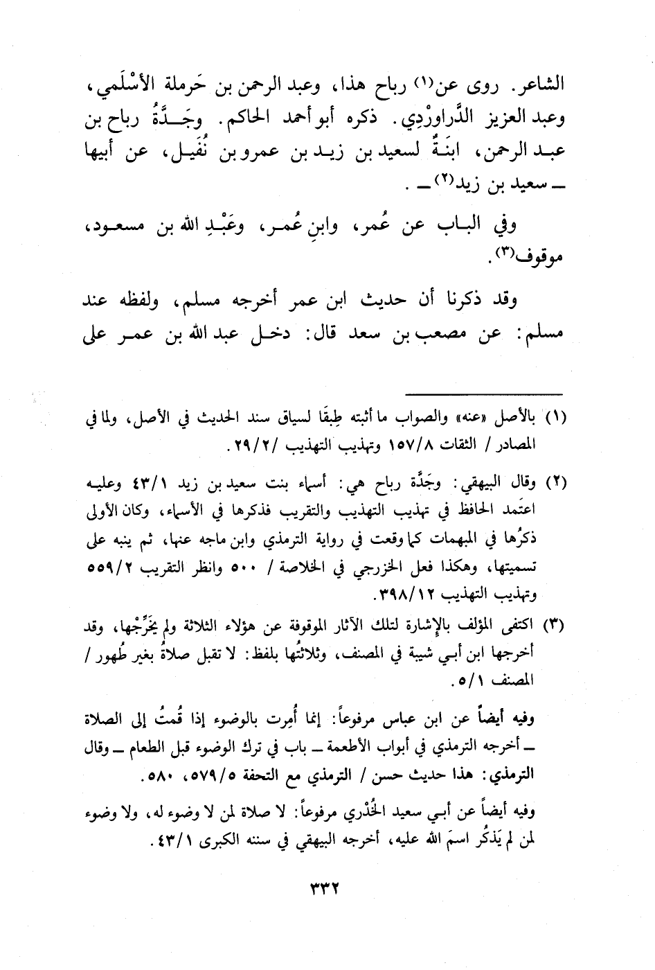 (¬2) وقال البيهقي: وجَدَّة رباح هي: أسماء بنت سعيد بن زيد 1/ 43 وعليه اعتَمد الحافظ في تهذيب التهذيب والتقريب فذكرها في الأسماء، وكان الأولى ذكرُها في المبهمات كما وقعت في رواية الترمذي وابن ماجه عنها، ثم ينبه على تسميتها، وهكذا فعل الخزرجي في الخلاصة/ 500 وانظر التقريب 2/ 559 وتهذيب التهذيب 12/ 398.