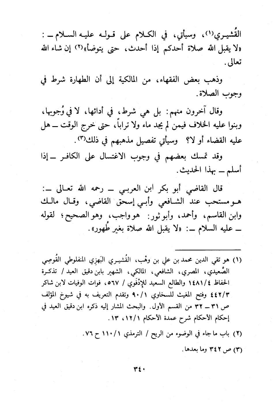 القُشيري (¬1)، وسيأتي، في الكلام على قوله عليه السلام-: "لا يقبل الله صلاة أحدكم إذا أحدث، حتى يتوضأ" (¬2) إن شاء الله تعالى.