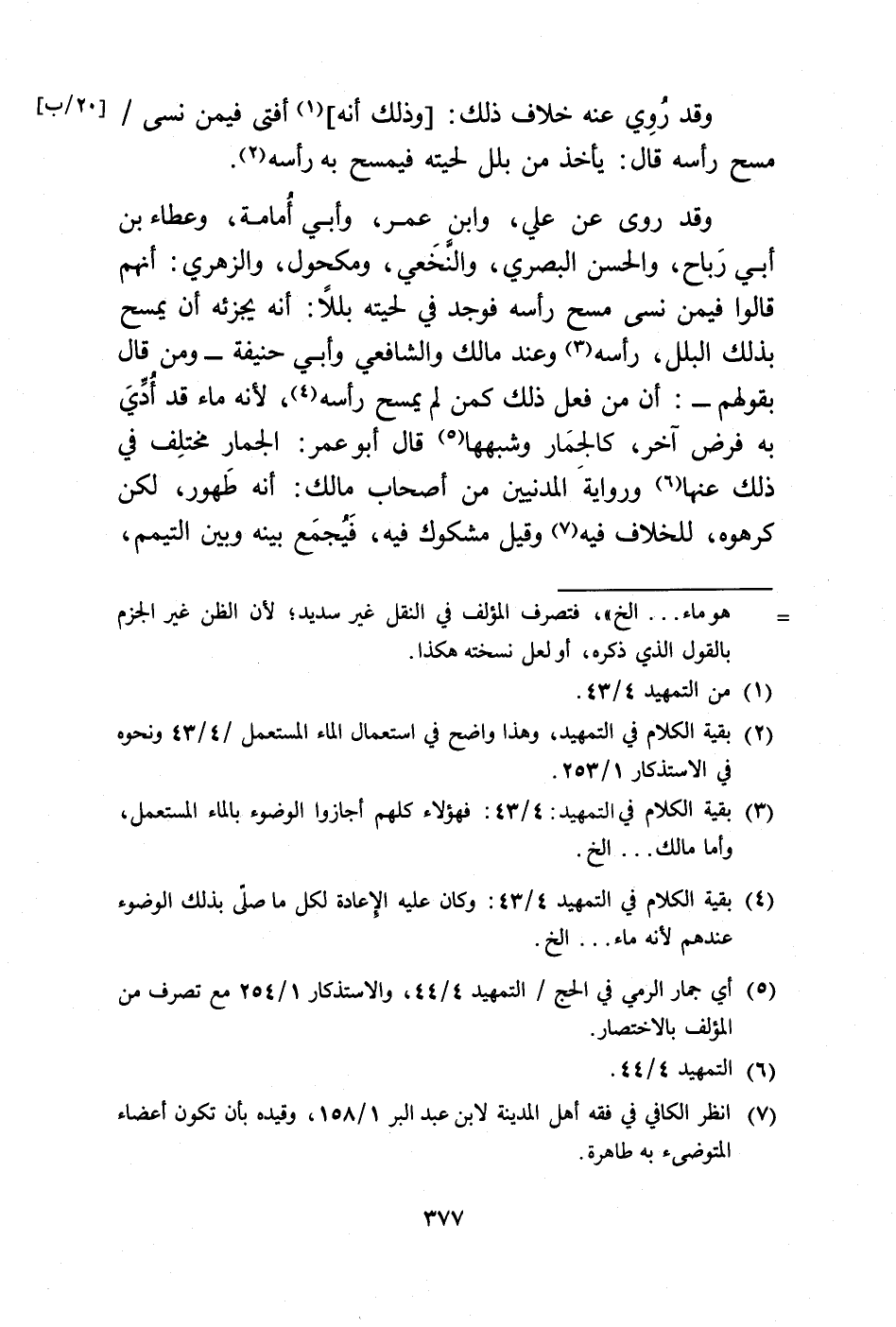 (¬2) بقية الكلام في التمهيد، وهذا واضح في استعمال الماء المستعمل/ 4/ 43 ونحوه في الاستذكار 1/ 253.