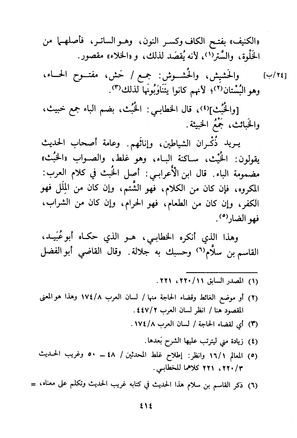 (¬6) ذكر القاسم بن سلام هذا الحديث في كتابه غريب الحديث وتكلم على معناه، =