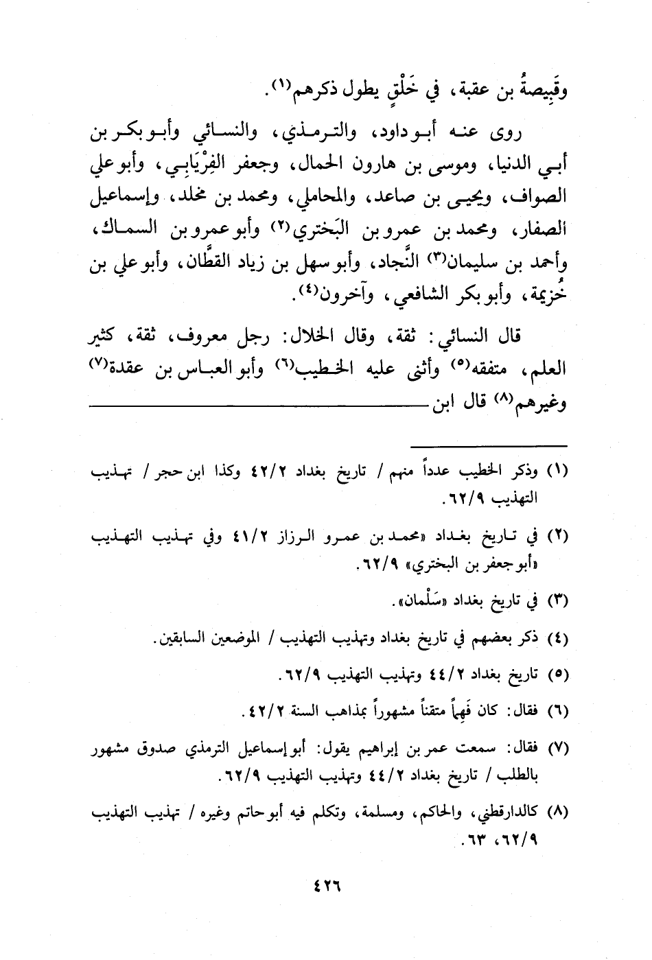 (¬5) تاريخ بغداد 2/ 44 وتهذيب التهذيب 9/ 62.
