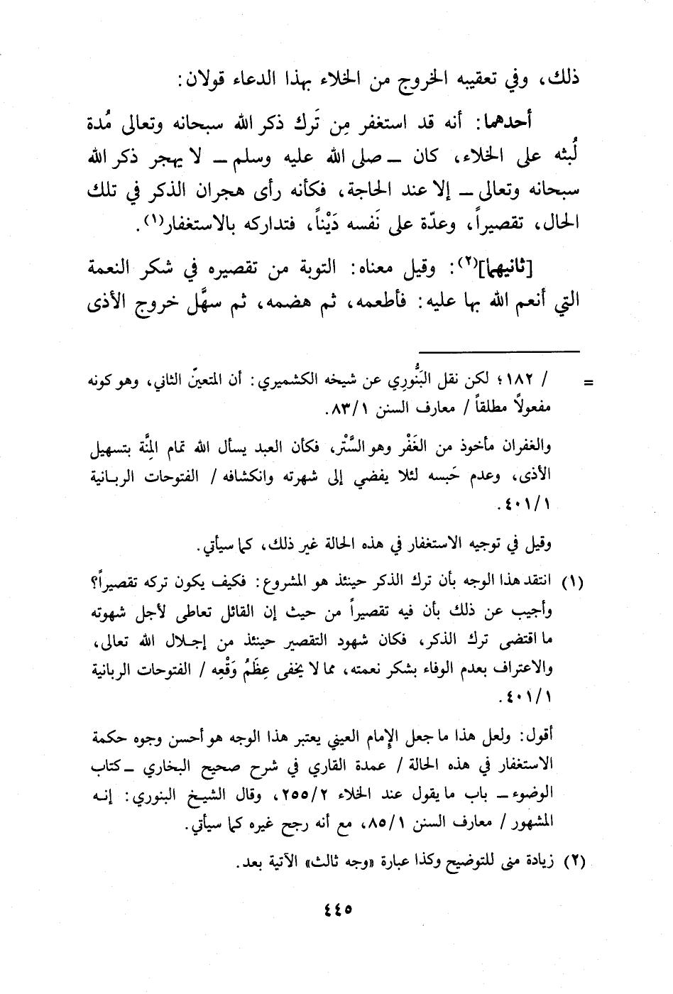 أقول: ولعل هذا ما جعل الإمام العيني يعتبر هذا الوجه هو أحسن وجوه حكمة الاستغفار في هذه الحالة/ عمدة القاري في شرح صحيح البخاري - كتاب الوضوء - باب ما يقول عند الخلاء 2/ 255، وقال الشيخ البنوري: إنه المشهور/ معارف السنن 1/ 85، مع أنه رجح غيره كما سيأتي.