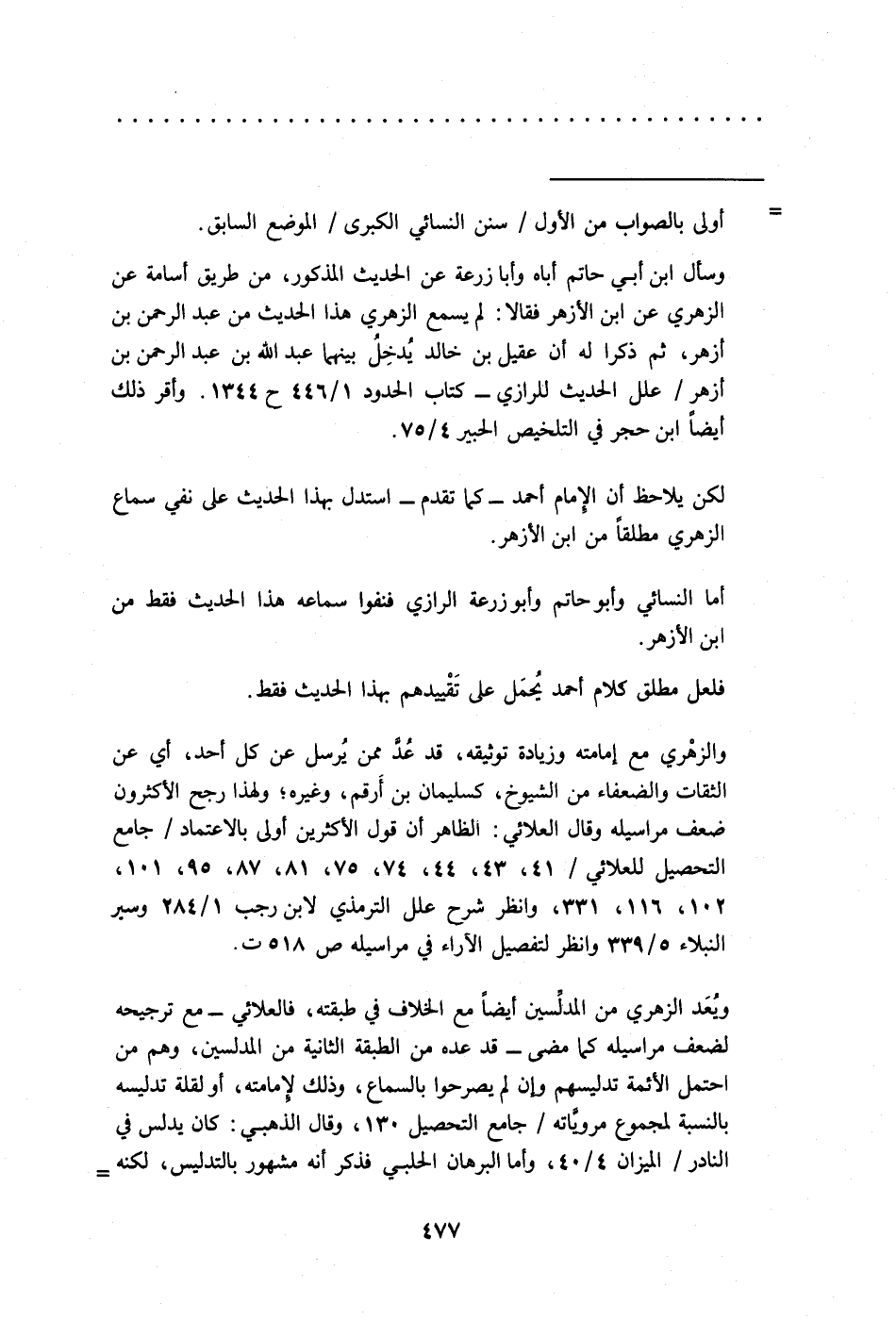 والزهْري مع إمامته وزيادة توثيقه، قد عُدَّ ممن يُرسل عن كل أحد، أي عن الثقات والضعفاء من الشيوخ، كسليمان بن أَرقم، وغيره؛ ولهذا رجح الأكثرون ضعف مراسيله وقال العلائي: الظاهر أن قول الأكثرين أولى بالاعتماد/ جامع التحصيل للعلائي/ 41، 43، 44، 74، 75، 81، 87، 95، 101، 102، 116، 331، وانظر شرح علل الترمذي لابن رجب 1/ 284 وسير النبلاء 5/ 339 وانظر لتفصيل الآراء في مراسيله ص 518 ت.