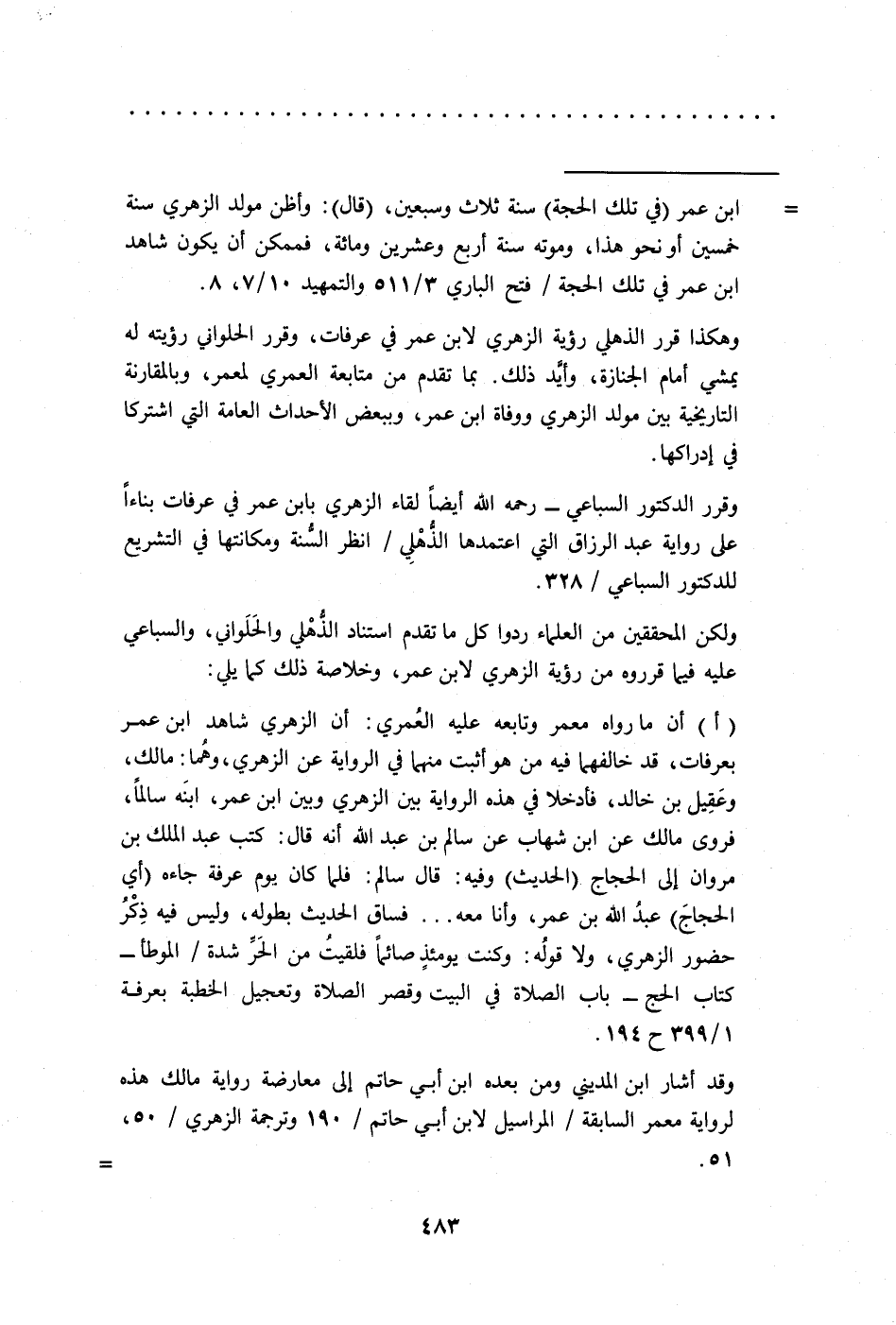 وقرر الدكتور السباعي - رحمه الله أيضًا لقاء الزهري بابن عمر في عرفات بناءًا على رواية عبد الرزاق التي اعتمدها الذُّهْلِي/ انظر السُّنة ومكانتها في التشريع للدكتور السباعي/ 328.