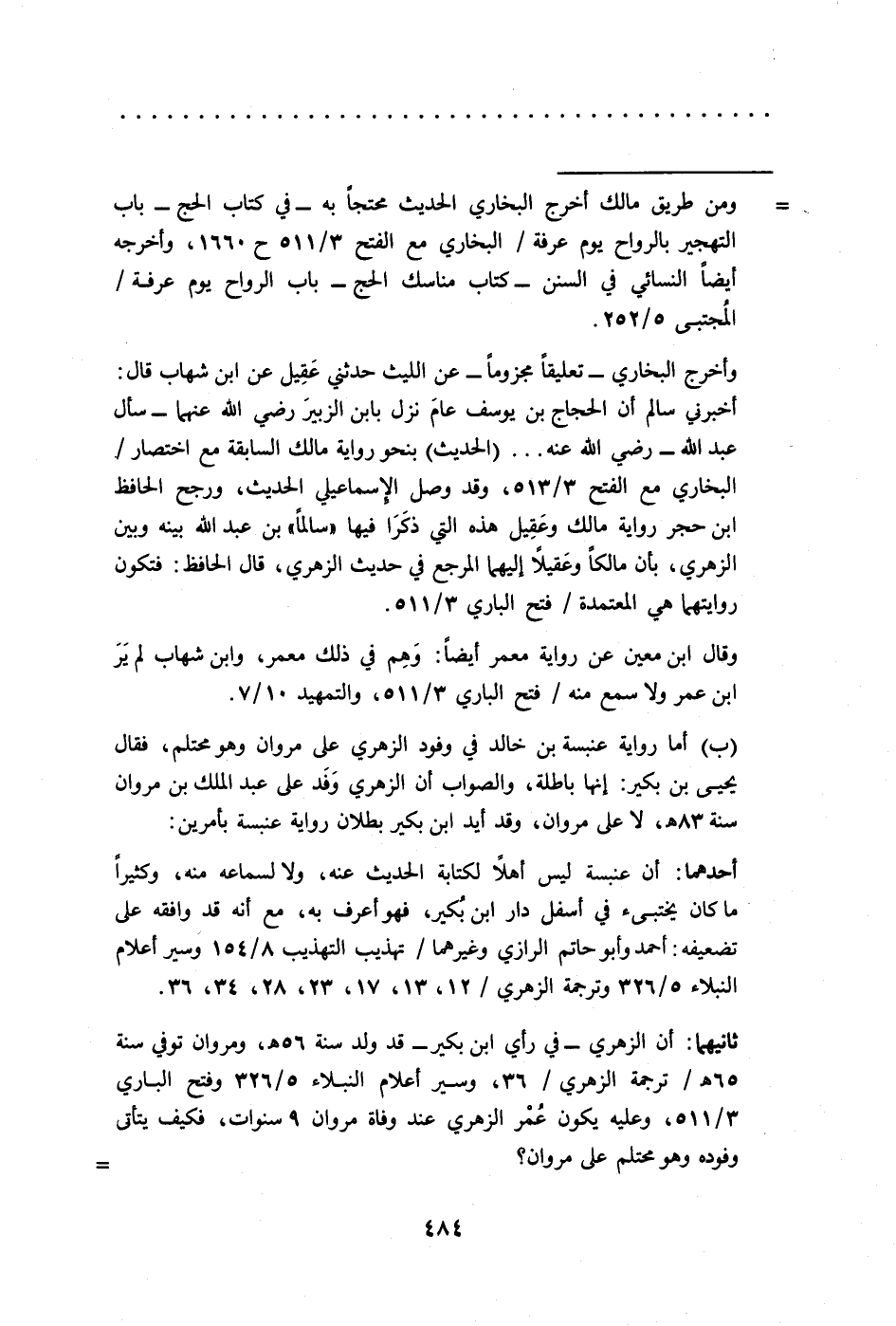 = ومن طريق مالك أخرج البخاري الحديث محتجًا به - في كتاب الحج - باب التهجير بالرواح يوم عرفة/ البخاري مع الفتح 3/ 511 ح 1660، وأخرجه أيضًا النسائي في السنن - كتاب مناسك الحج - باب الرواح يوم عرفة/ المُجتبى 5/ 252.