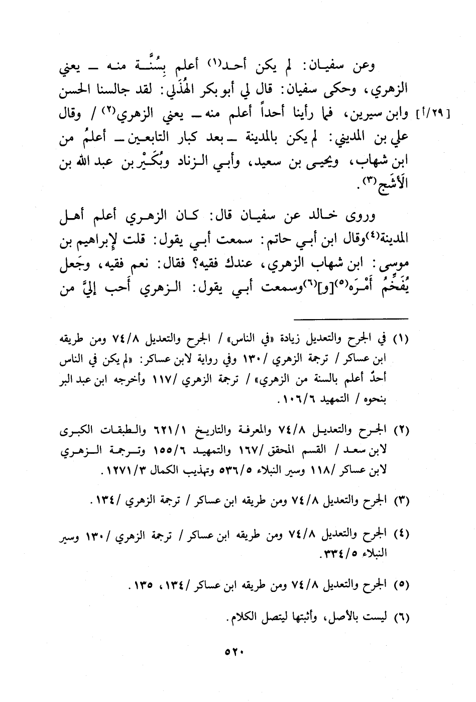 (¬4) الجرح والتعديل 8/ 74 ومن طريقه ابن عساكر/ ترجمة الزهري/ 130 وسير النبلاء 5/ 334.