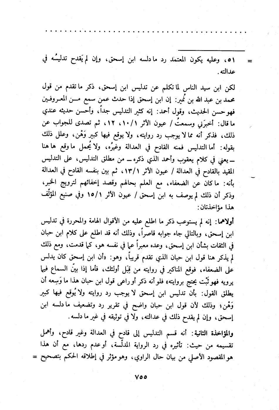 = 51، وعليه يكون المعتمد رد ما دلسه ابن إسحق، وإن لم يَقدح تدليسُه في عدالته.