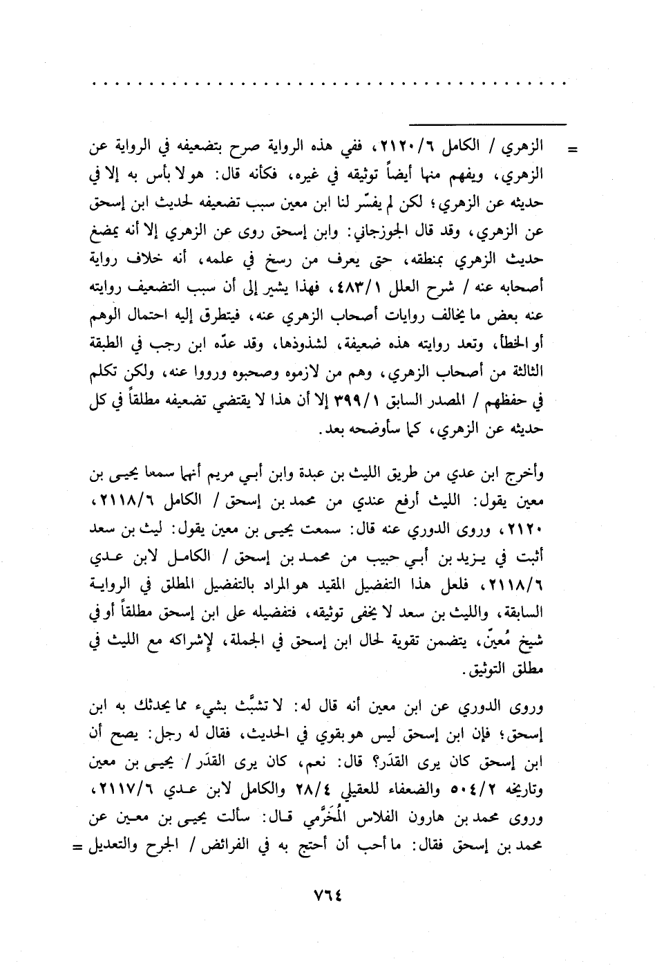 = الزهري/ الكامل 6/ 2120، ففي هذه الرواية صرح بتضعيفه في الرواية عن الزهري، ويفهم منها أيضًا توثيقه في غيره، فكأنه قال: هو لا بأس به إلا في حديثه عن الزهري؛ لكن لم يفسّر لنا ابن معين سبب تضعيفه لحديث ابن إسحق عن الزهري، وقد قال الجوزجاني: وابن إسحق روى عن الزهري إلا أنه يمضغ حديث الزهري بمنطقه، حتى يعرف من رسخ في علمه، أنه خلاف رواية أصحابه عنه/ شرح العلل 1/ 483، فهذا يشير إلى أن سبب التضعيف روايته عنه بعض ما يخالف روايات أصحاب الزهري عنه، فيتطرق إليه احتمال الوهم أو الخطأ، وتعد روايته هذه ضعيفة، لشذوذها، وقد عدّه ابن رجب في الطبقة الثالثة من أصحاب الزهري، وهم من لازموه وصحبوه ورووا عنه، ولكن تكلم في حفظهم/ المصدر السابق 1/ 399 إلا أن هذا لا يقتضي تضعيفه مطلقًا في كل حديثه عن الزهري، كما سأوضحه بعد.