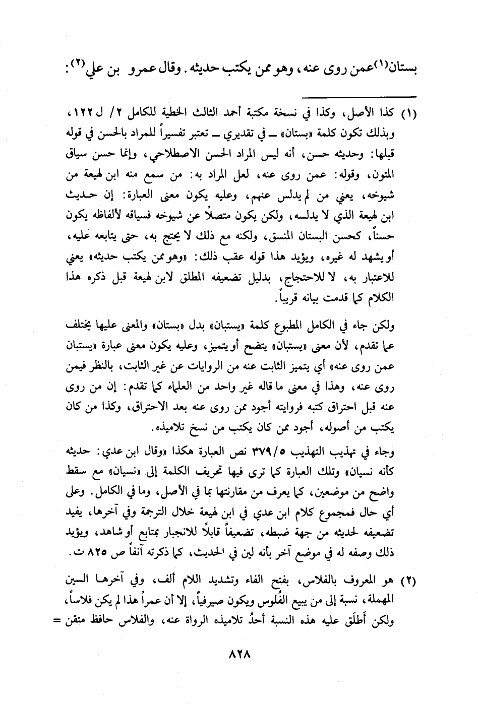 ولكن جاء في الكامل المطبوع كلمة "يستبان" بدل "بستان" والمعنى عليها يختلف عما تقدم، لأن معنى "يستبان" يتضح أو يتميز، وعليه يكون معنى عبارة "يستبان عمن روى عنه" أي يتميز الثابت عنه من الروايات عن غير الثابت، بالنظر فيمن روى عنه، وهذا في معنى ما قاله غير واحد من العلماء كما تقدم: إن من روى عنه قبل احتراق كتبه فروايته أجود ممن روى عنه بعد الاحتراق، وكذا من كان يكتب من أصوله، أجود ممن كان يكتب من نسخ تلاميذه.